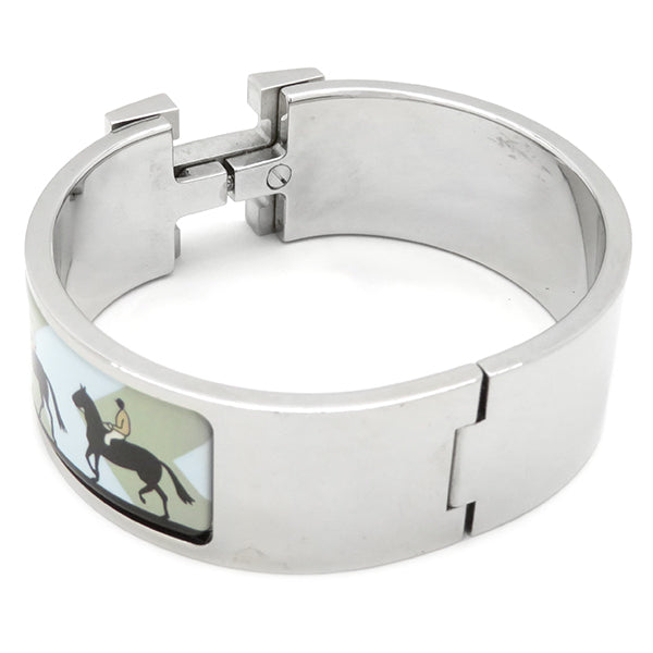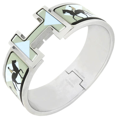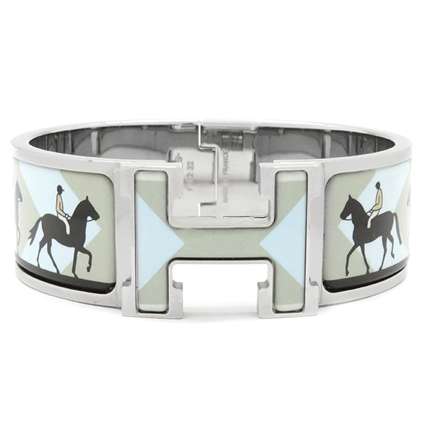 エルメス HERMES クリッククラック ブルー×マルチカラー GP エナメル ブレスレット シルバー金具 Hブレス 馬柄