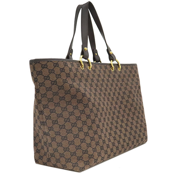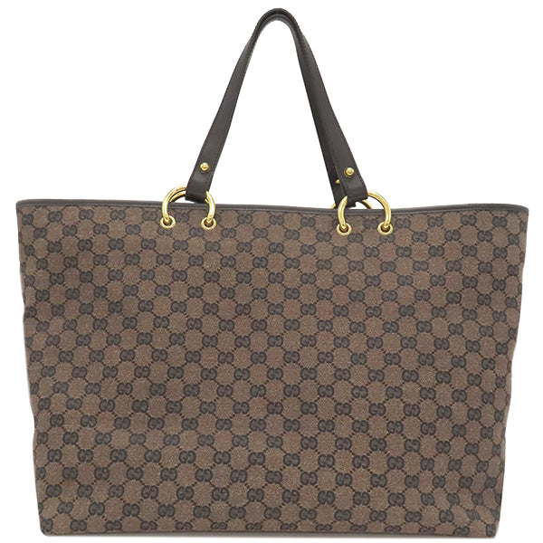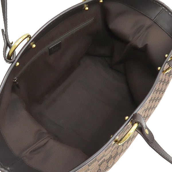 グッチ GUCCI GGキャンバス トート 285768 ダークブラウン GGキャンバス レザー トートバッグ ゴールド金具 茶 ショルダー 肩掛け