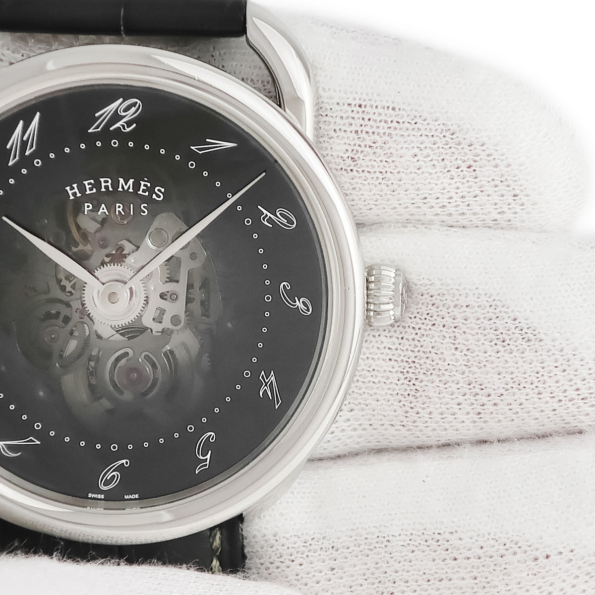 エルメス HERMES アルソー スケレット AR2.710 自動巻き メンズ ブラック アラビア ラウンド スケルトン スモーク加工