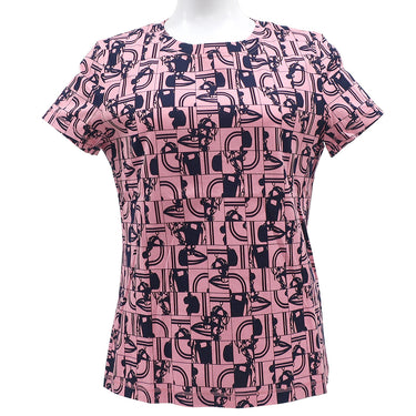エルメス HERMES 総柄 ピンク×ネイビー コットン 13195 半袖Tシャツ 紺 【Brides de GALA en Desordre/ブライド ドゥ ガラ アン デゾルドル】