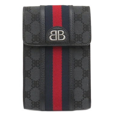バレンシアガ BALENCIAGA BALENCIAGA × GUCCI ザ ハッカー プロジェクト 680130 ブラック キャンバス レザー ショルダーバッグ シルバー金具 グッチコラボ ミニバッグ 黒