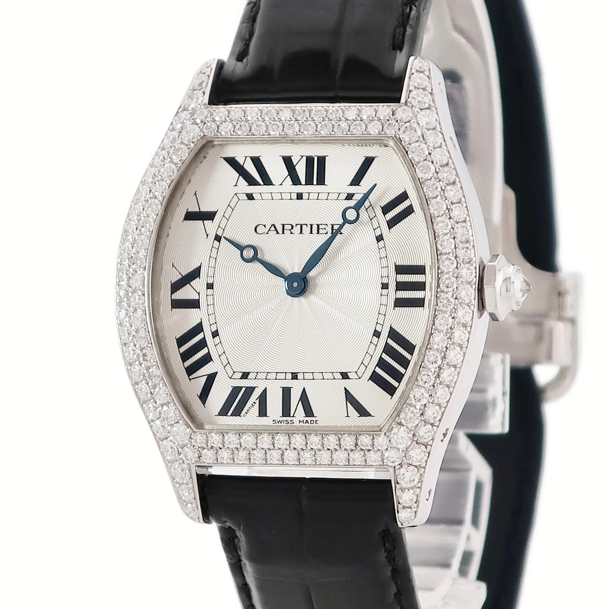 カルティエ Cartier トーチュ LM WA503851 手巻き メンズ レディース K18WG無垢 純正ダイヤ トノウ ギヨシェ ローマン 青針