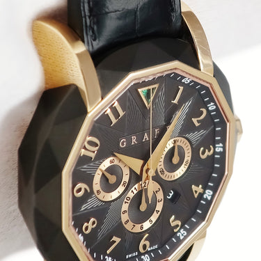 グラフ GRAFF クロノグラフ CG42DLCGG 自動巻き メンズ 純正エメラルド ダイヤ K18RG×黒DLC加工 アラビア 多角形 限定