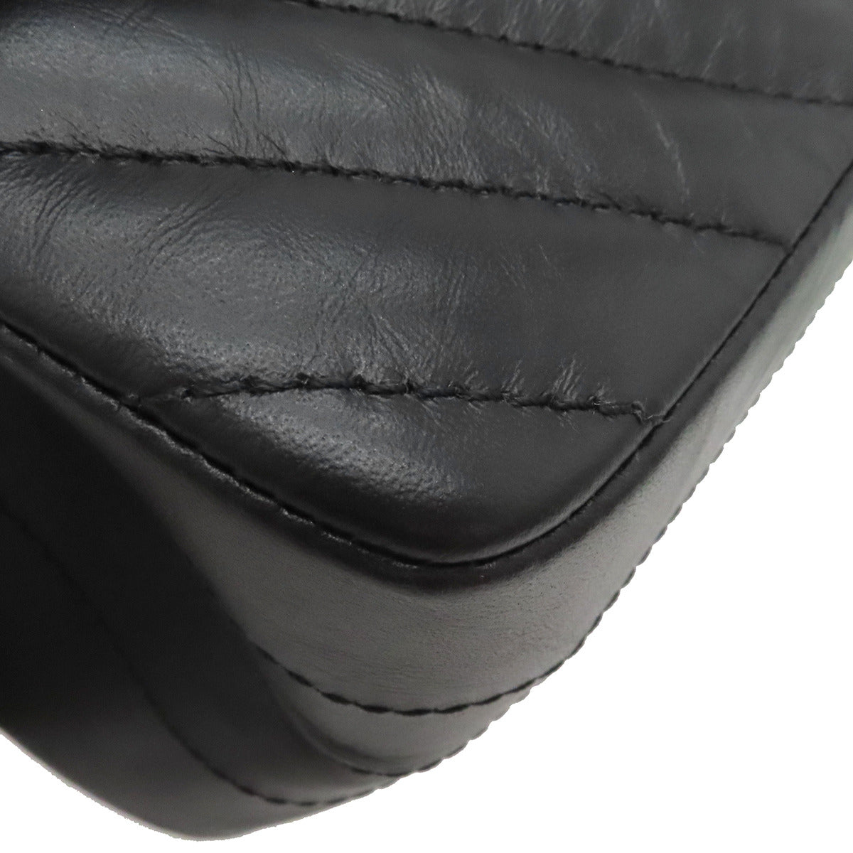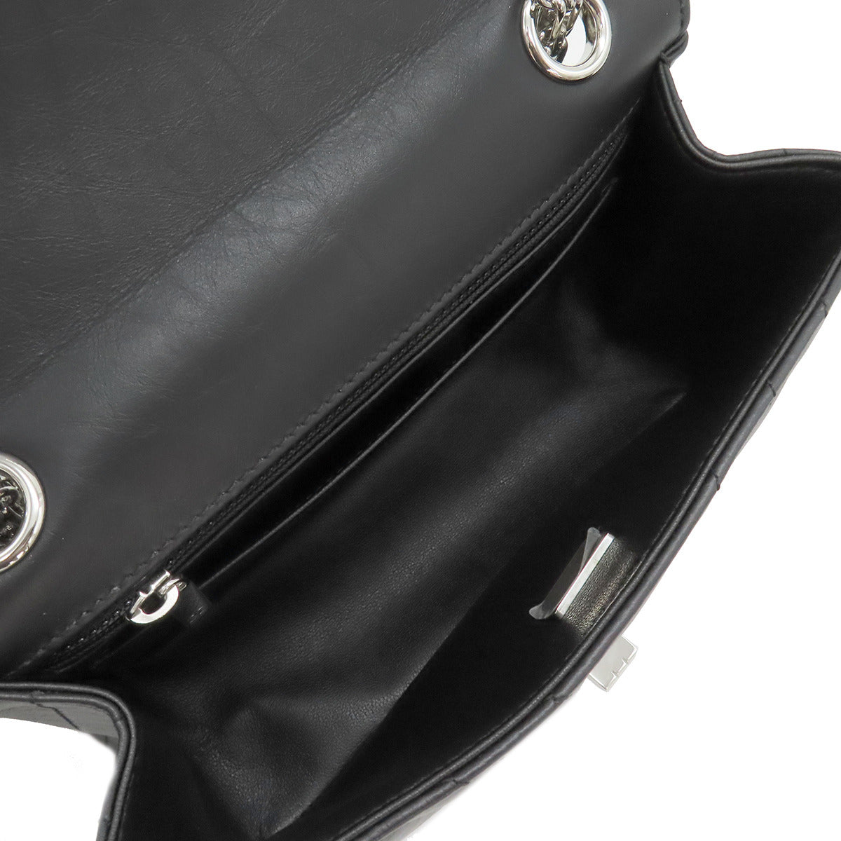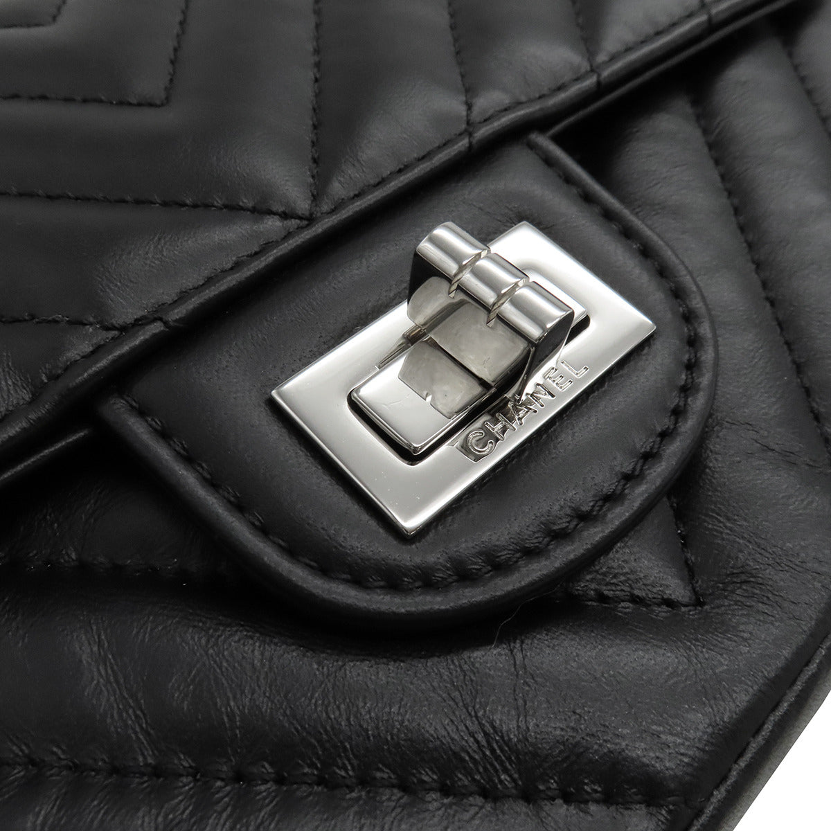 シャネル CHANEL シェブロン 2.55 20 ブラック レザー ショルダーバッグ シルバー金具 黒 Wチェーン Vステッチ