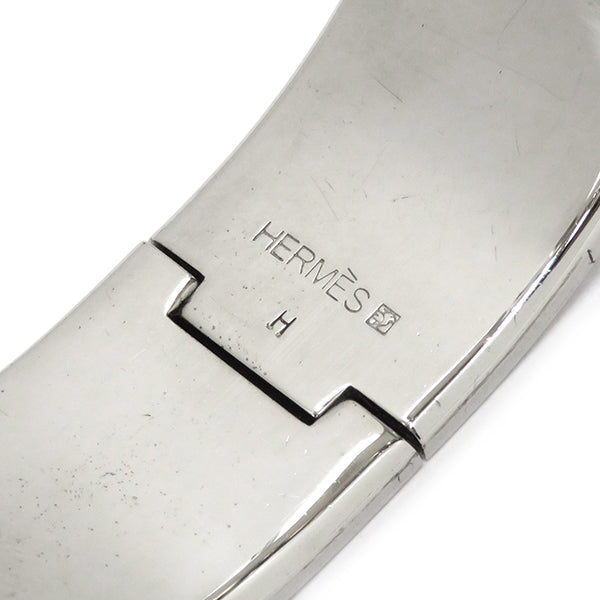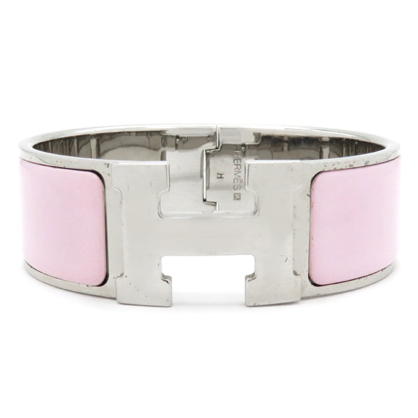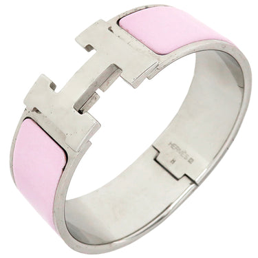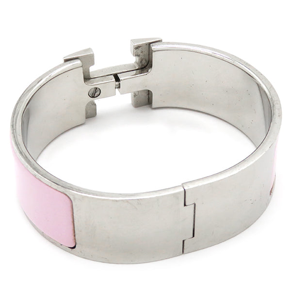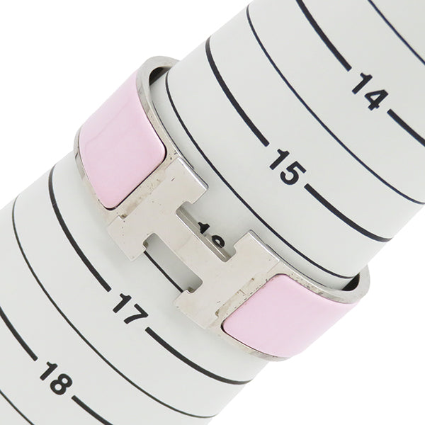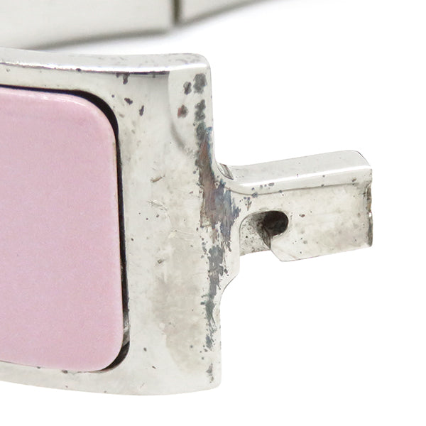 エルメス HERMES クリッククラックH GM ピンク×シルバー メタル エナメル ブレスレット シルバー金具 Hブレス