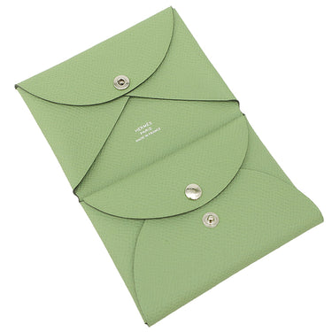 エルメス HERMES カルヴィ デュオ ヴェールクリケット ヴォーエプソン カードケース シルバー金具 新品 未使用 緑