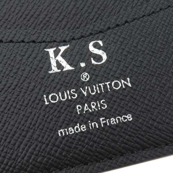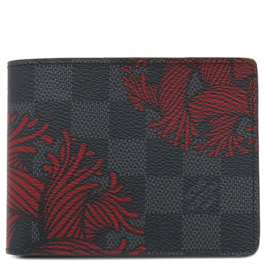 ルイヴィトン LOUIS VUITTON ポルトフォイユ スレンダー ロープパターン N41678 ダミエグラフィット ダミエグラフィットキャンバス 三つ折り財布 黒 赤 イニシャル刻印あり