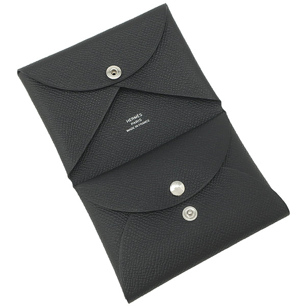 エルメス HERMES カルヴィ デュオ ブラック ヴォーエプソン カードケース シルバー金具 新品 未使用 黒