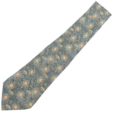エルメス HERMES 惑星 UFO 9cm グレー×オレンジ シルク ネクタイ 灰色 橙色 総柄 宇宙柄 星
