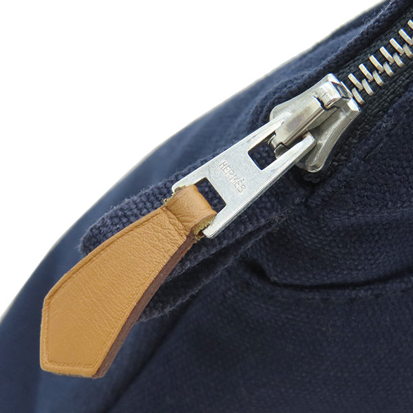 エルメス HERMES ボリードポーチ MM ネイビー コットン ポーチ シルバー金具 紺