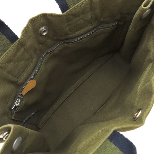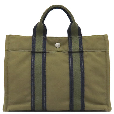 エルメス HERMES フールトゥ PM オリーブ×ネイビー キャンバス トートバッグ シルバー金具