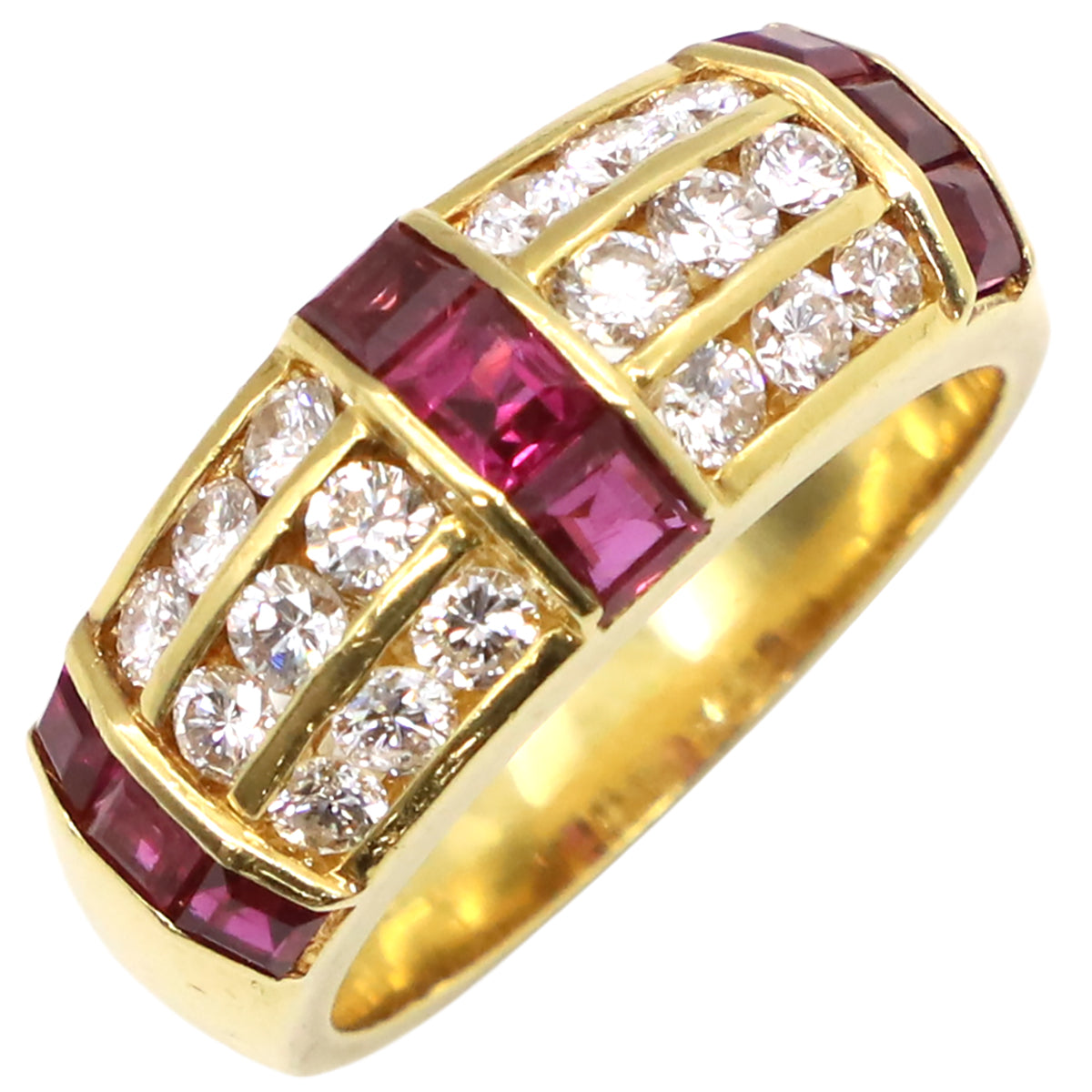 ゲインズボロウ GAINSBOROUGH ルビー ダイヤリング イエローゴールド K18YG ダイヤモンド リング 指輪 750 18K 18金 12号