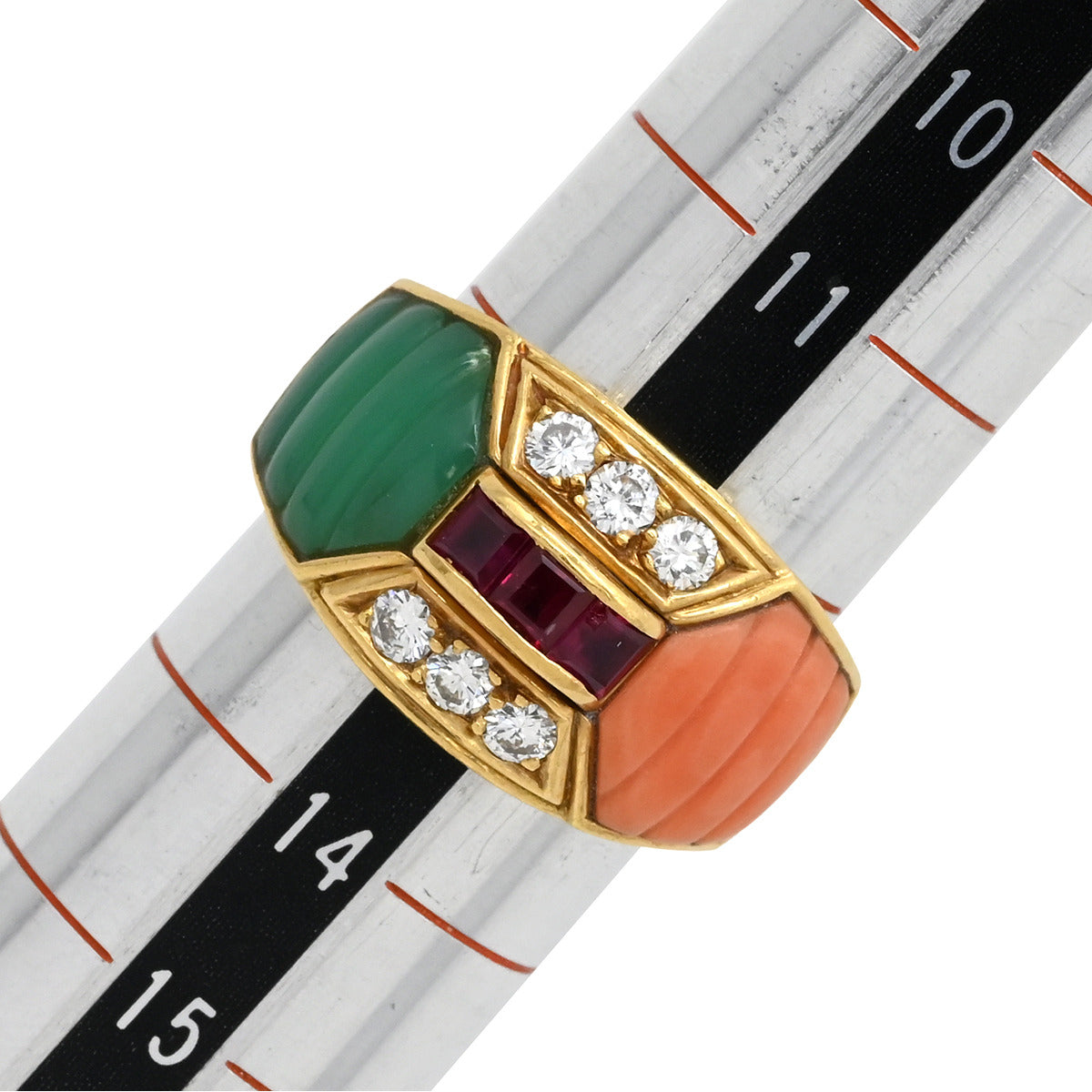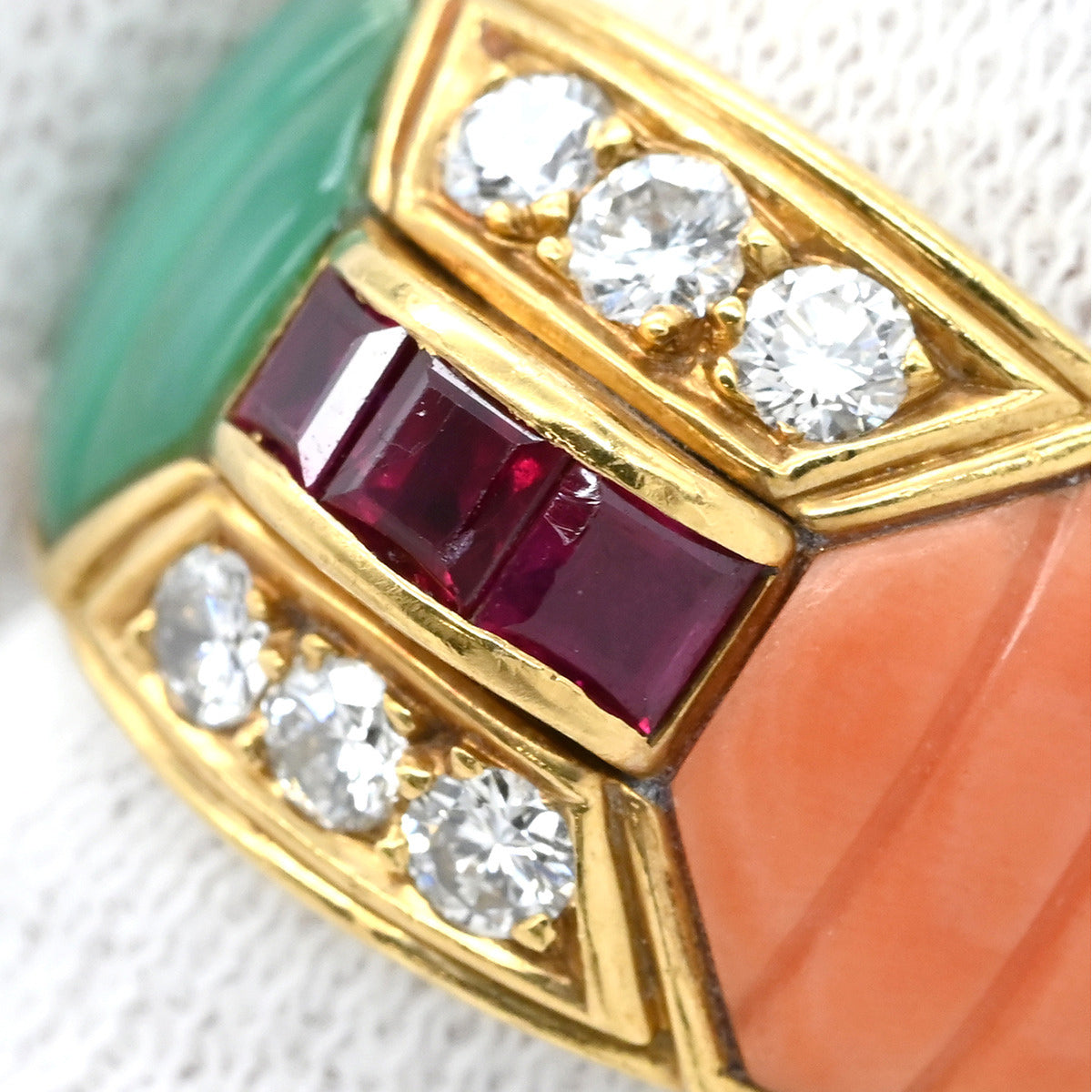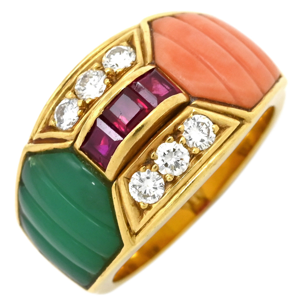 ノンブランド NON BRAND ルビー 珊瑚 ダイヤ リング イエローゴールド リング 指輪 Au750 18K 18金 赤 緑 ピンク 12.5号
