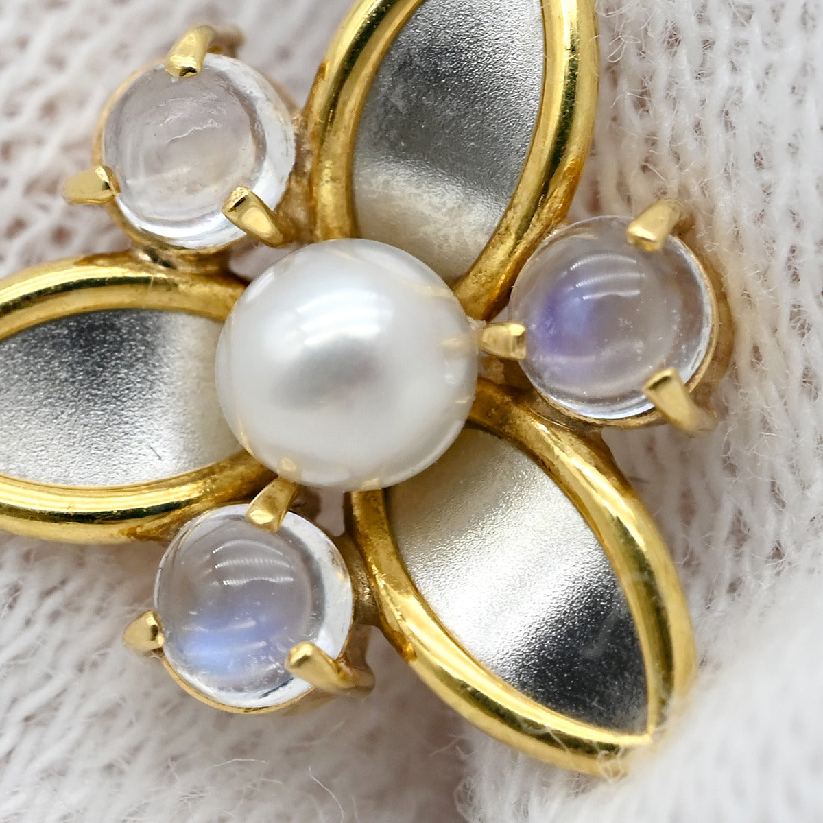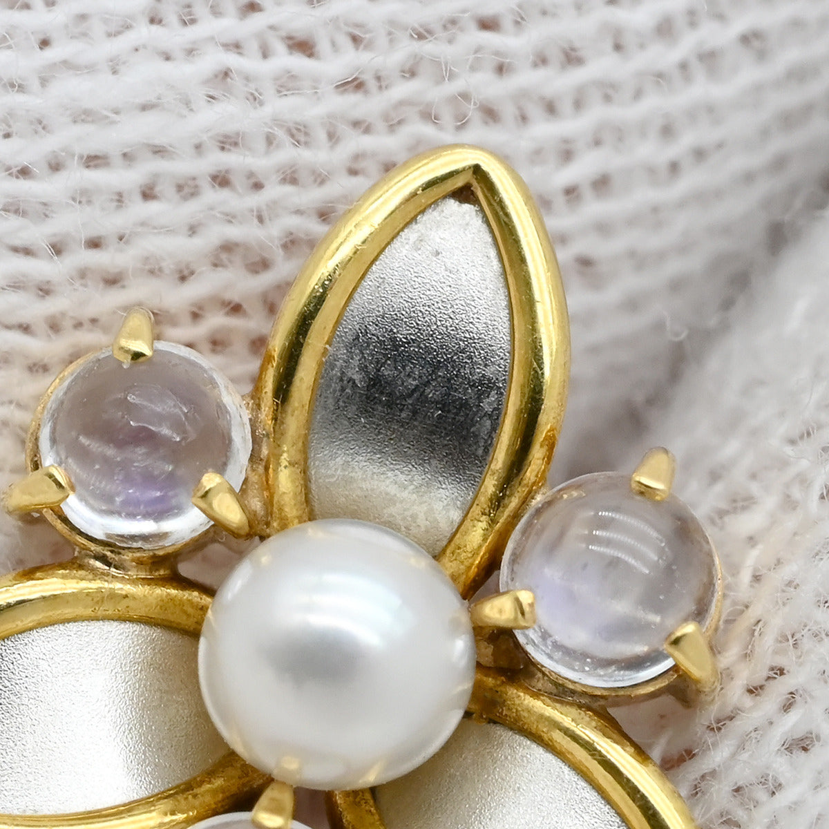 ノンブランド NON BRAND コンビピアス フラワーモチーフ イエローゴールドXプラチナシルバー ピアス