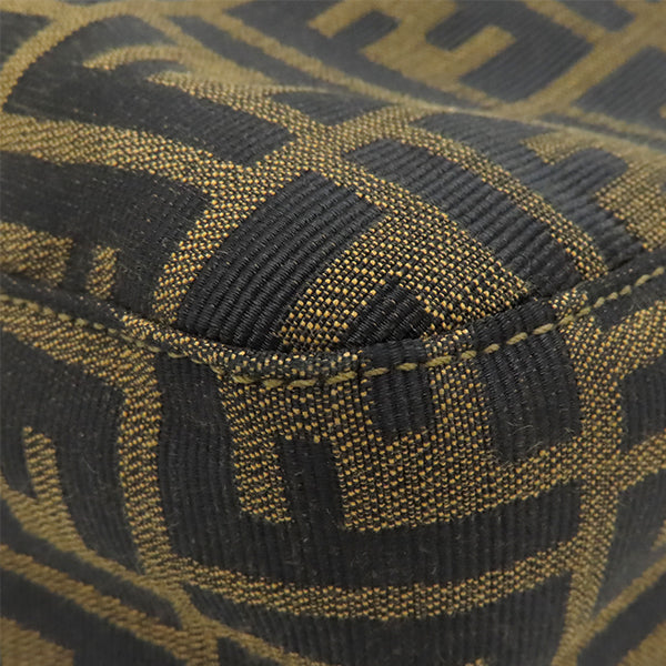 フェンディ FENDI ズッカ ブラウン×ダークブラウン キャンバス レザー ショルダーバッグ ゴールド金具 茶 FF 肩掛け