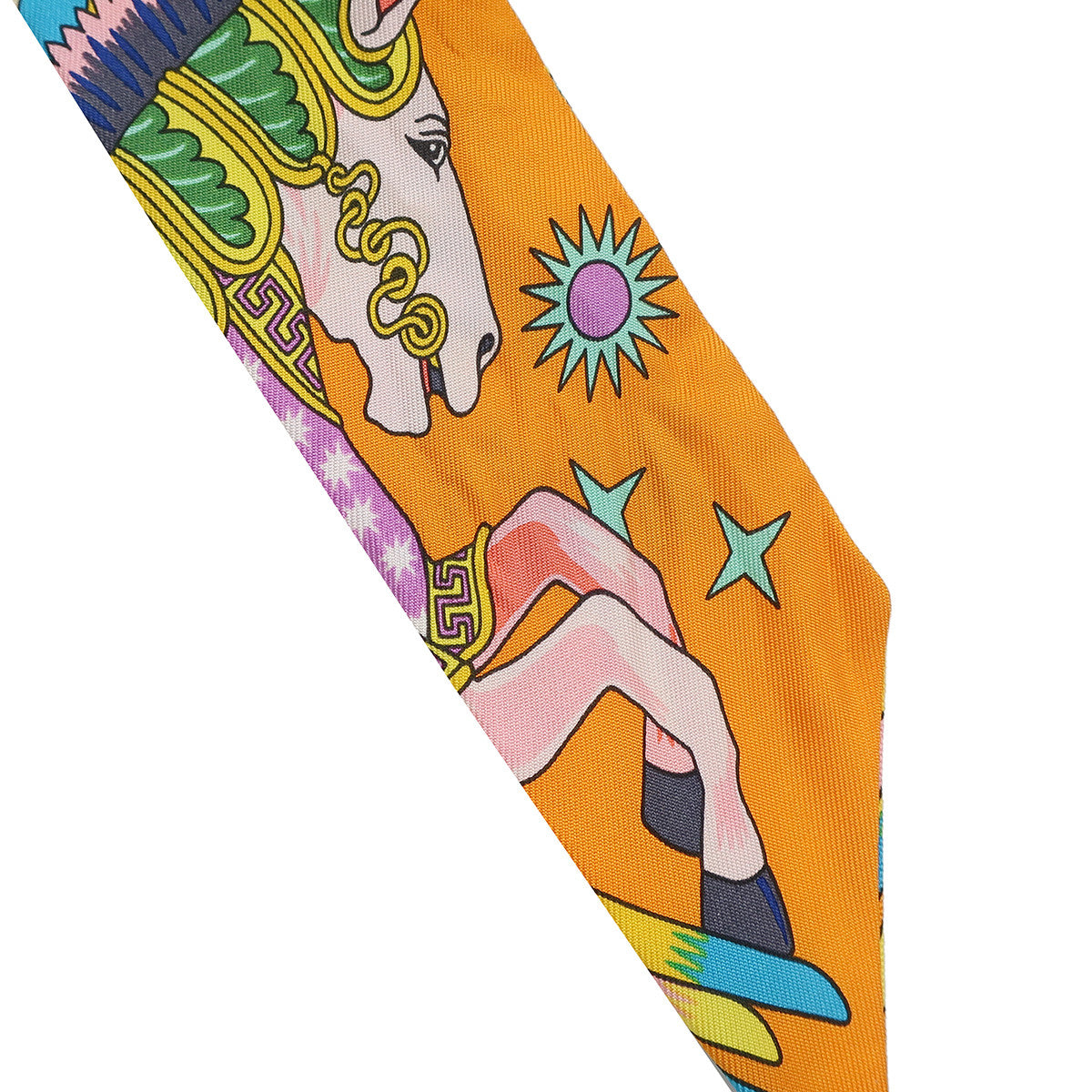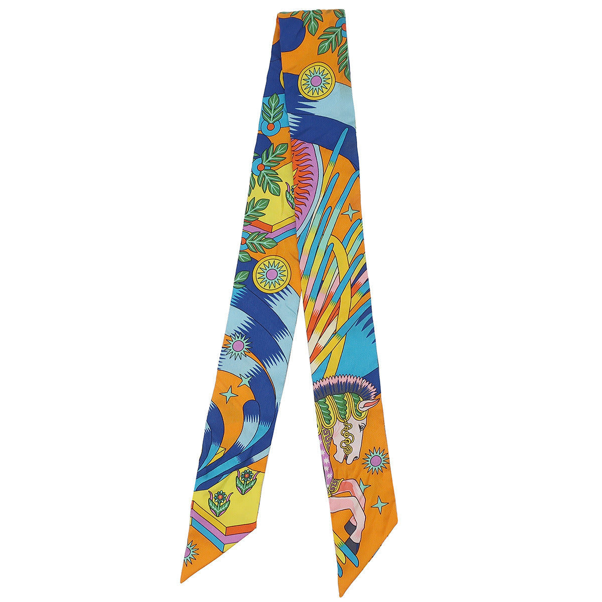 エルメス HERMES ツイリー オレンジヴィフ×ジョーヌヴィフ シルク スカーフ 【LA SOURCE DE PEGASE/ペガサスの源泉】