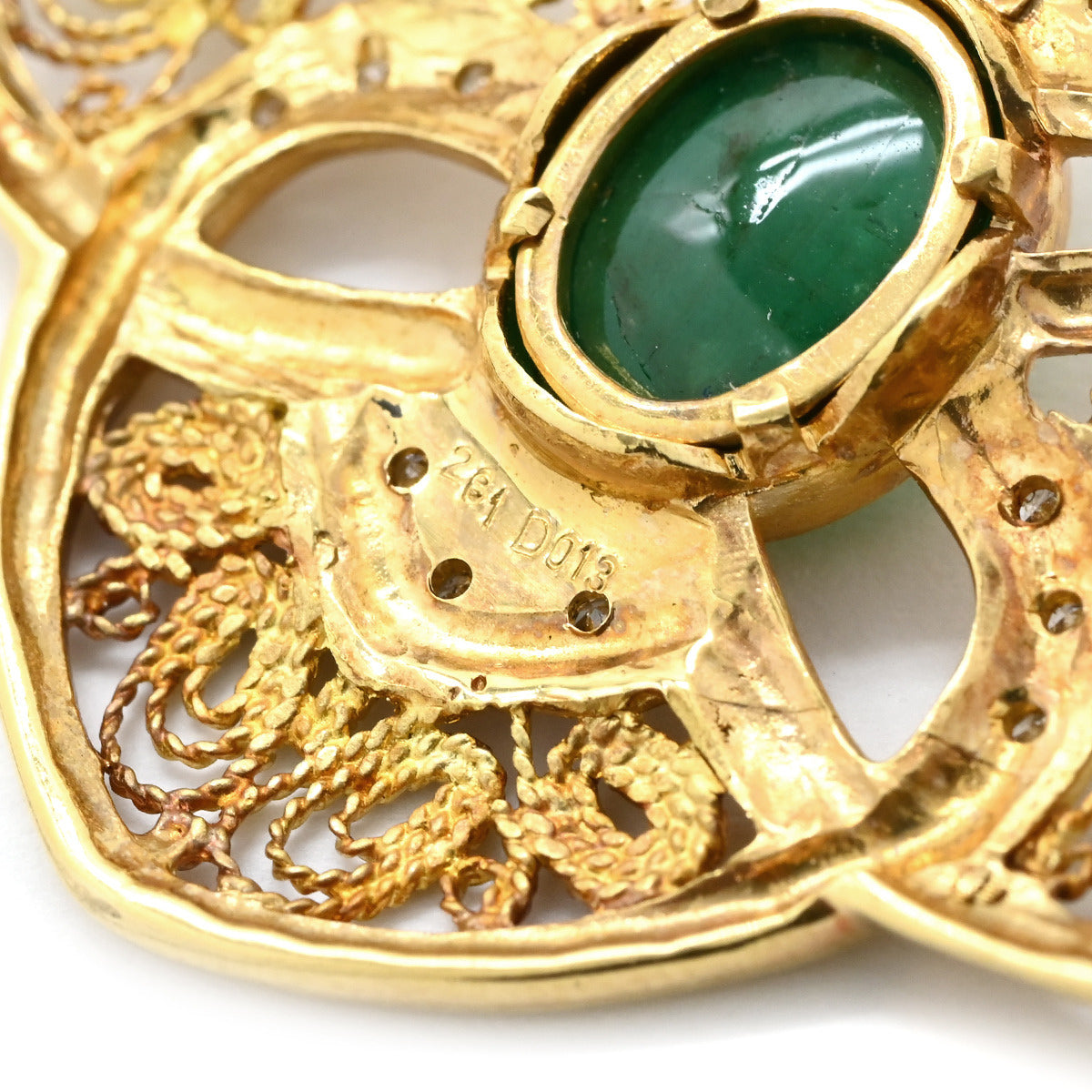 ノンブランド NON BRAND エメラルド ダイヤ イエローゴールド ブローチ ハチ MOTH 昆虫モチーフ