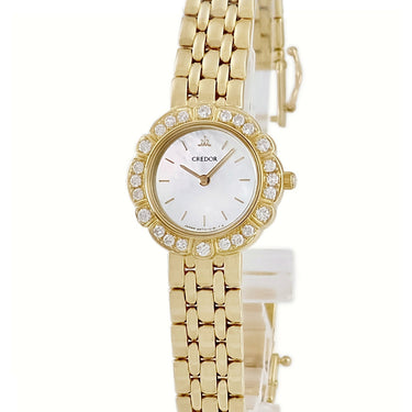 クレドール Credor シグノ ホワイトシェル 1E70-019T GTAA980 クオーツ レディース K18YG無垢 純正ダイヤ フラワーモチーフ