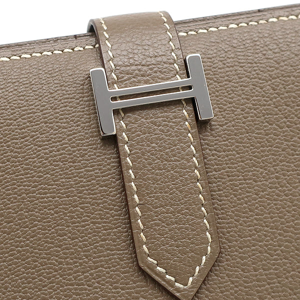 エルメス HERMES ベアンスフレ エトゥープ シェーブル 長財布 シルバー金具 グレージュ 二つ折り財布