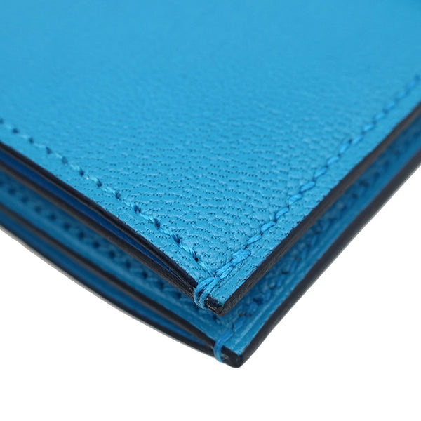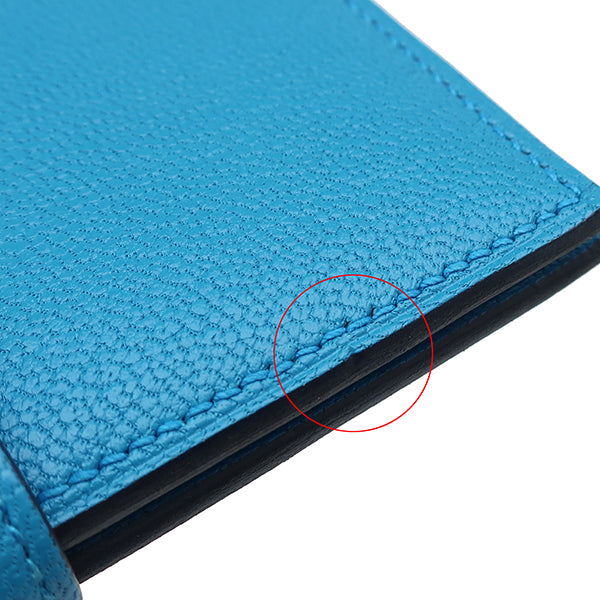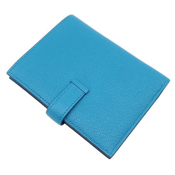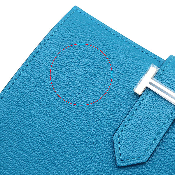 エルメス HERMES ベアンコンパクト ブルーフリーダ シェーブル 二つ折り財布 シルバー金具 青