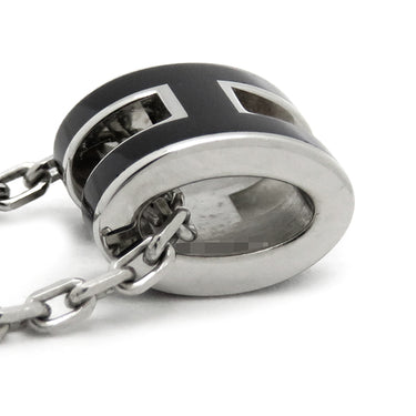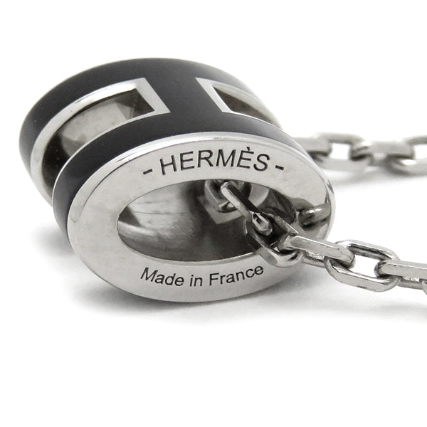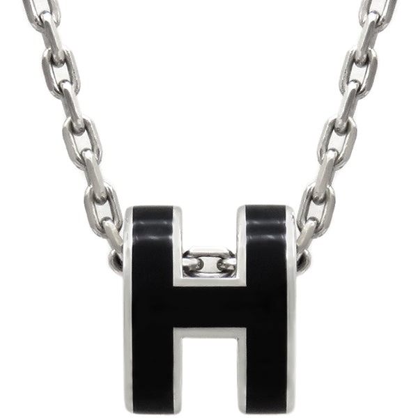 エルメス HERMES ポップアッシュ ミニ ペンダント ブラック×シルバー メタル ラッカー ネックレス シルバー金具 Hモチーフ
