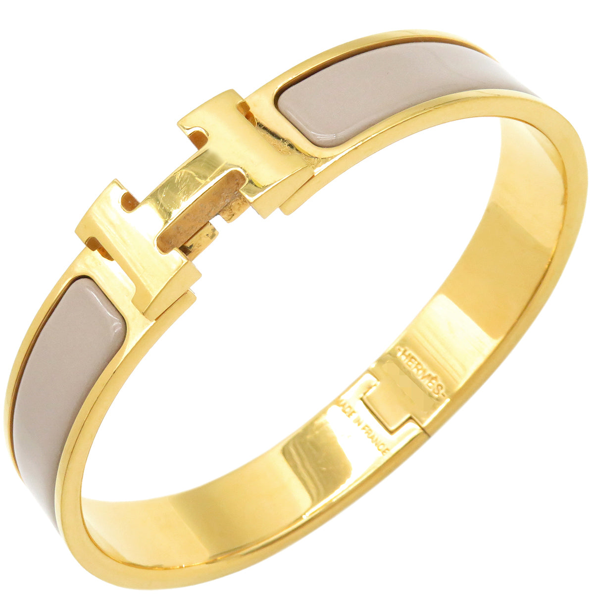エルメス HERMES クリックH GM マロングラッセ×ゴールド GP エナメル ブレスレット ゴールド金具 Hブレス クリッククラック グレージュ
