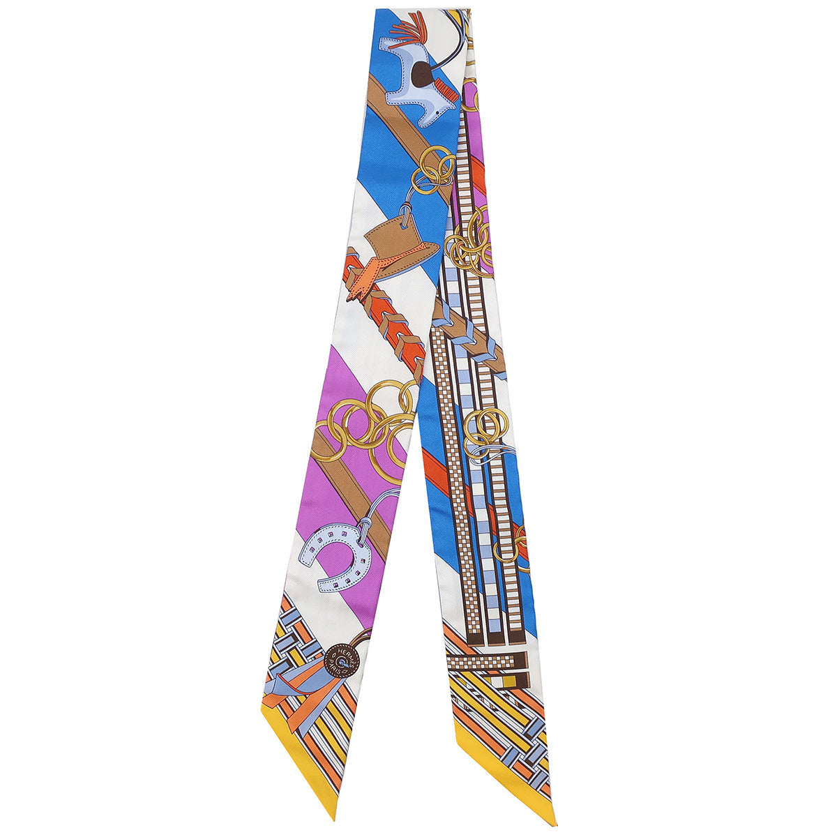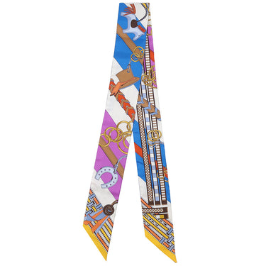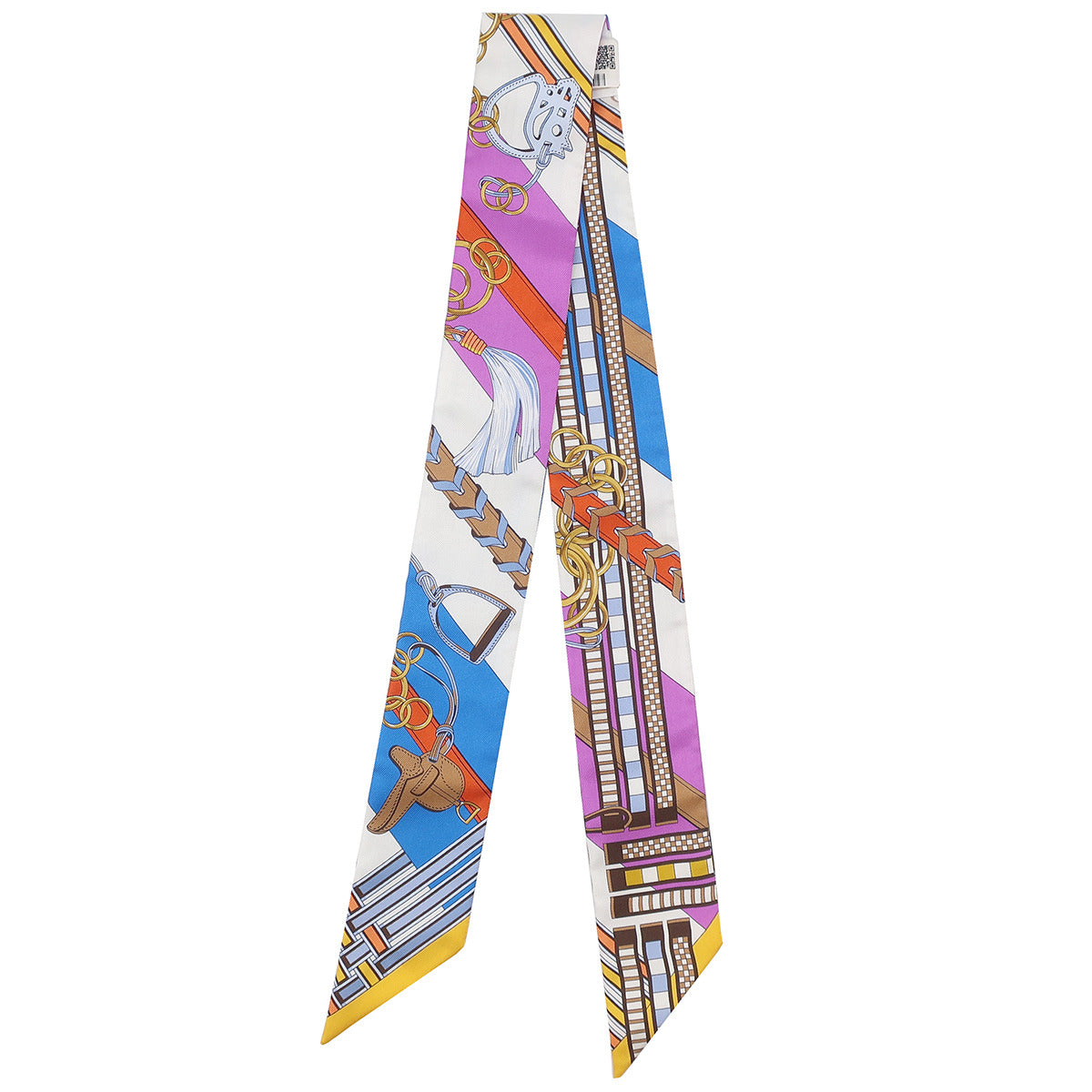 エルメス HERMES ツイリー シクラメン×ブルーヴィフ×ホワイト シルク スカーフ 新品 未使用【BRIDES ET GRIS GRIS/馬勒とチャーム】