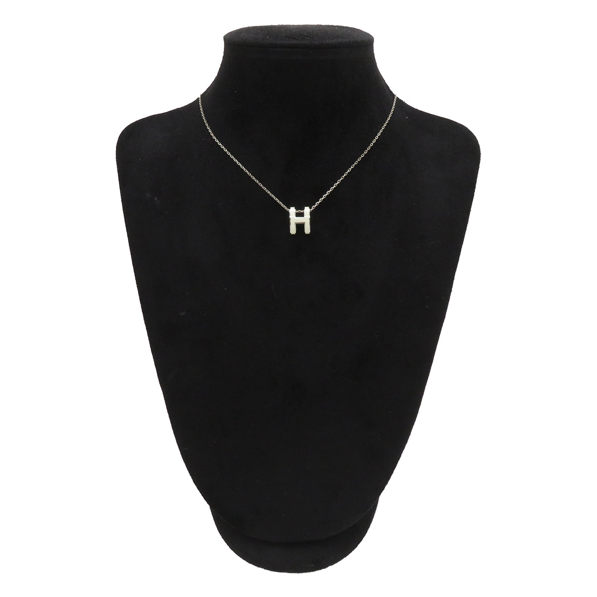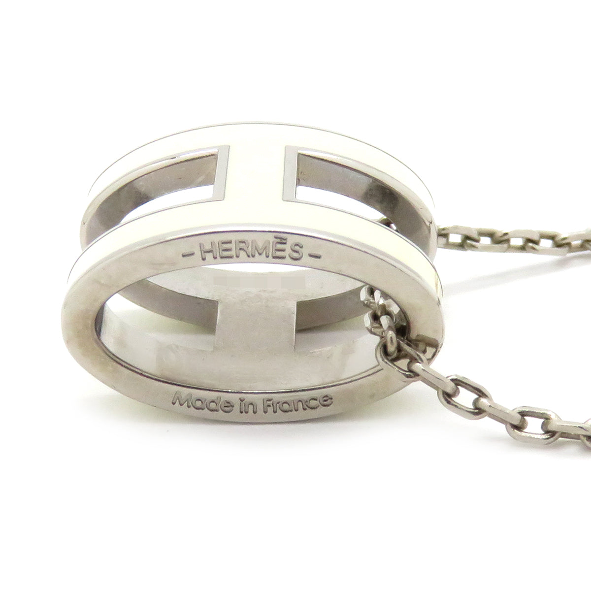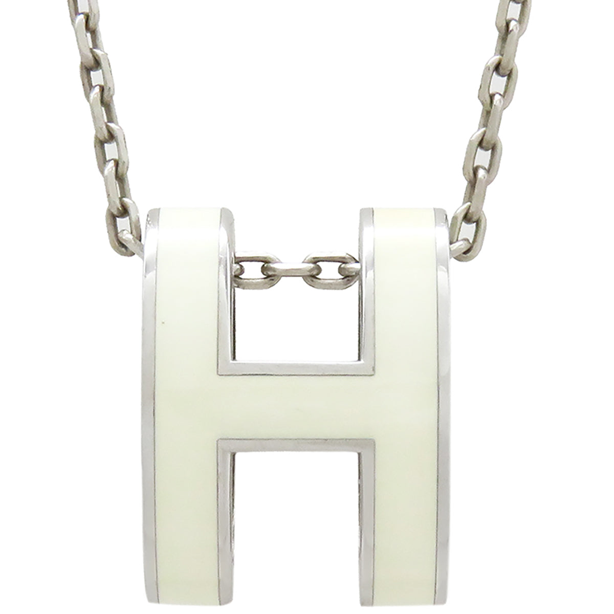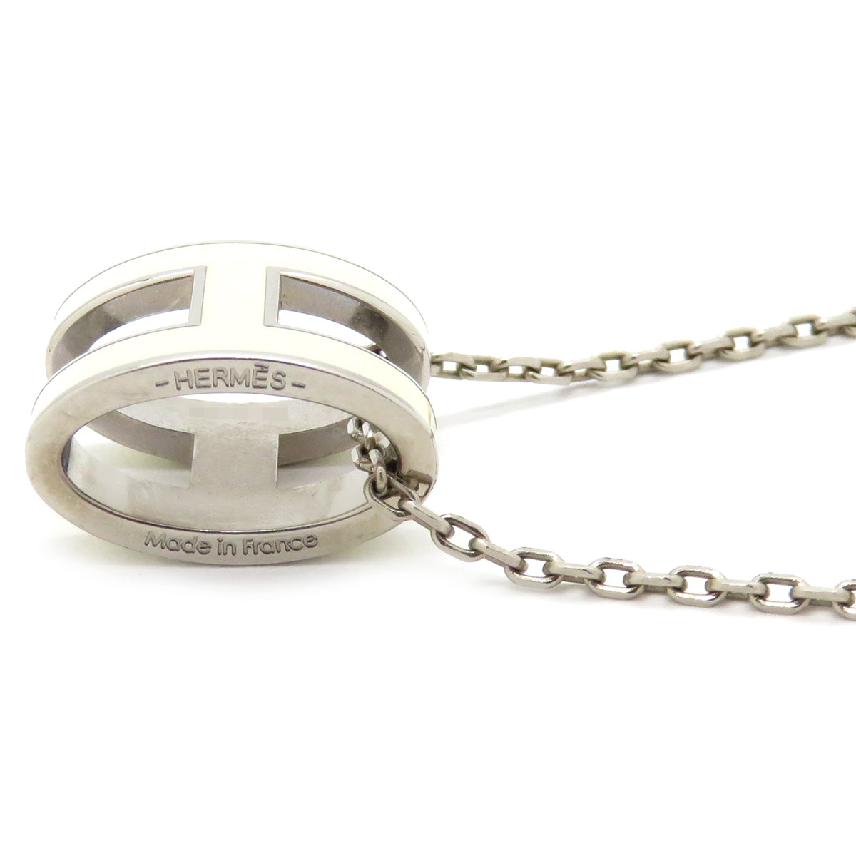 エルメス HERMES ポップアッシュ ペンダント ホワイト×シルバー メタル ラッカー ネックレス シルバー金具 Hモチーフ