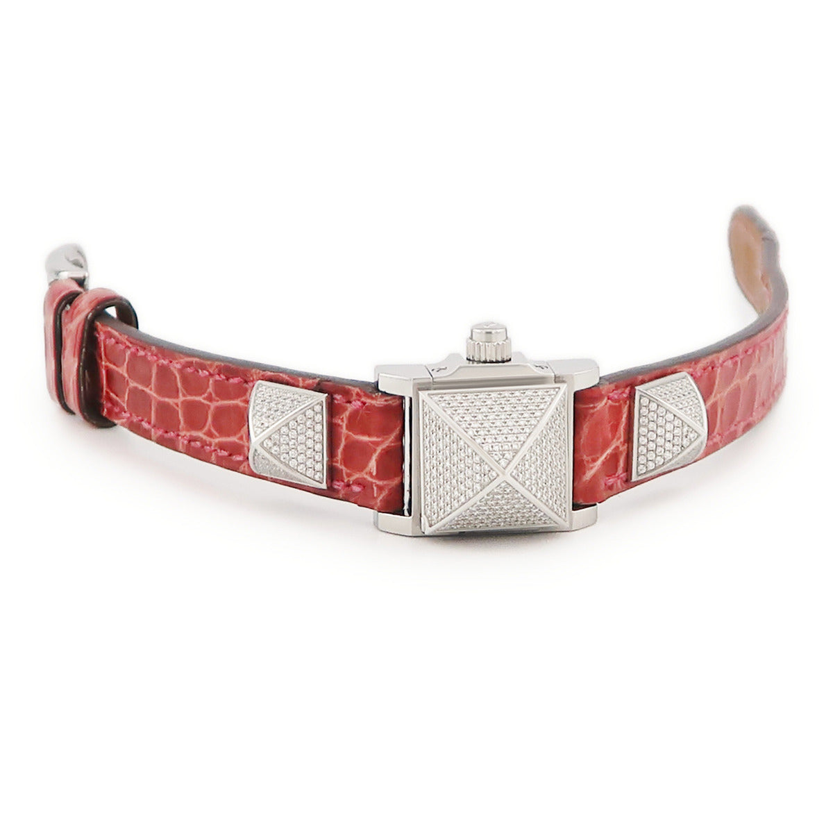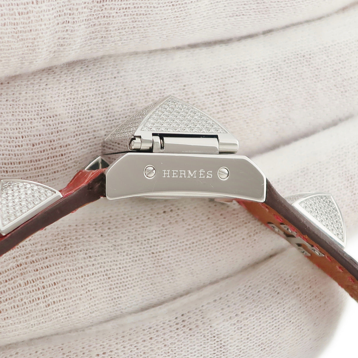 エルメス HERMES ミニメドール ME2.130 クオーツ レディース 純正ダイヤ スクエア スタッズ 横開き シルバー