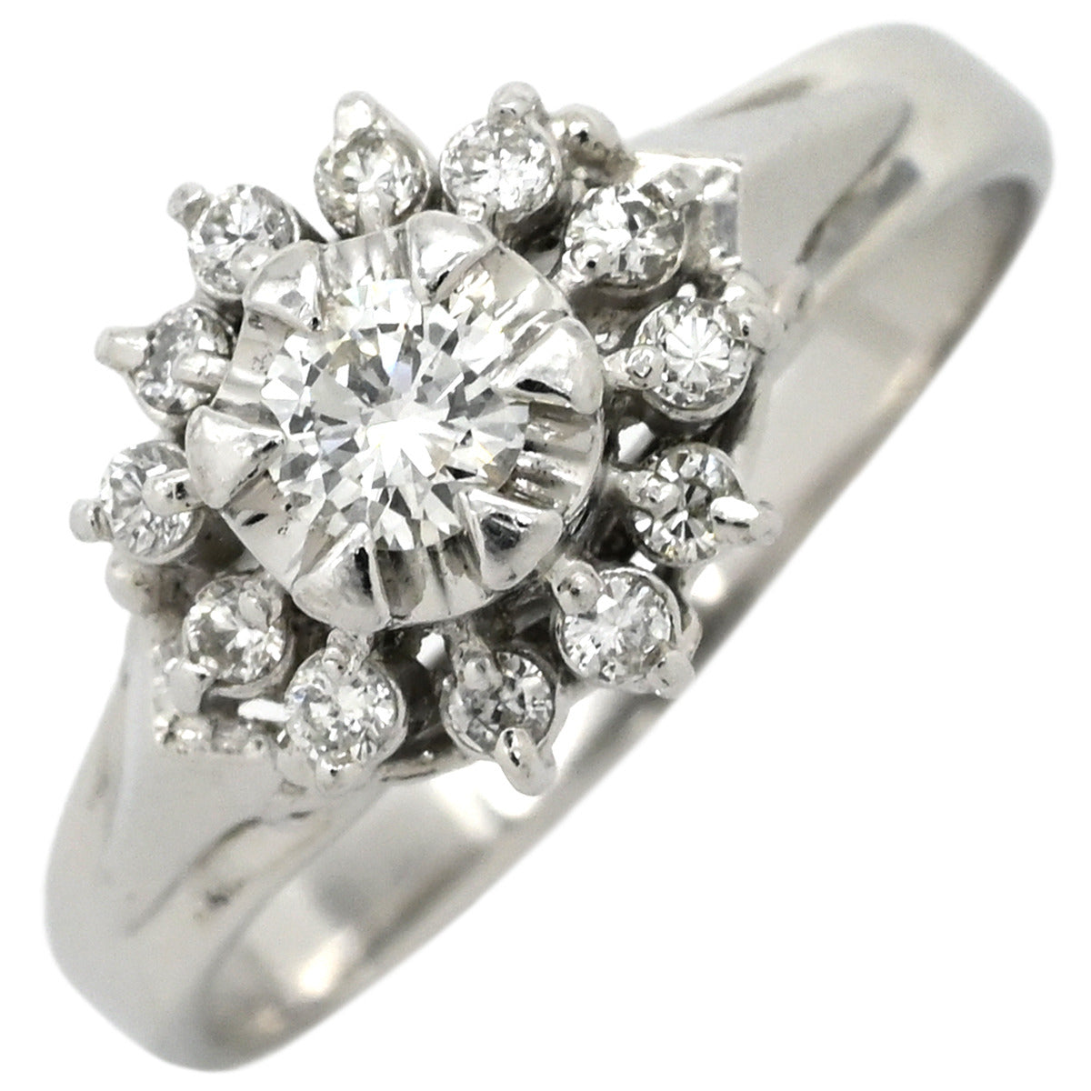 ノンブランド NON BRAND プラチナシルバー リング 指輪 プラチナム ダイヤ フラワーモチーフ 花 12号