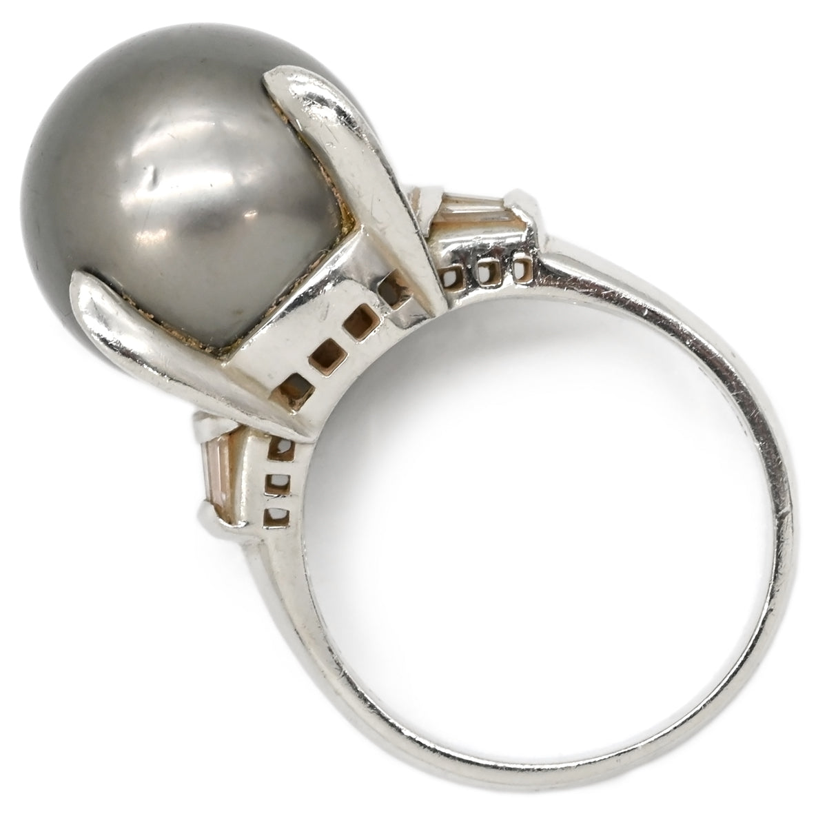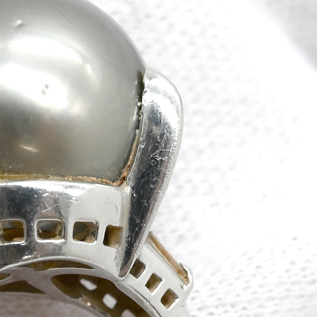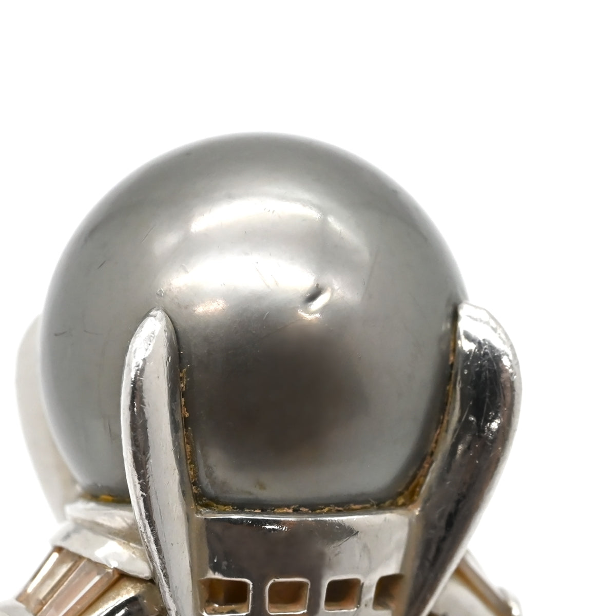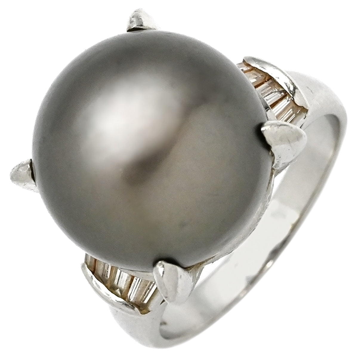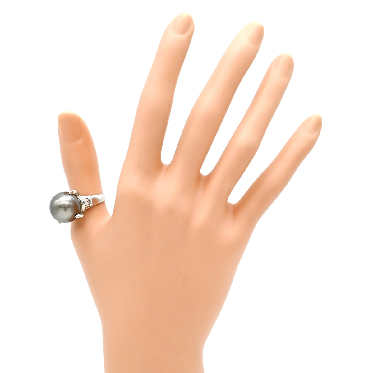 ノンブランド NON BRAND 黒蝶パール ダイヤリング プラチナシルバー リング 指輪 1粒 1P 16.5号