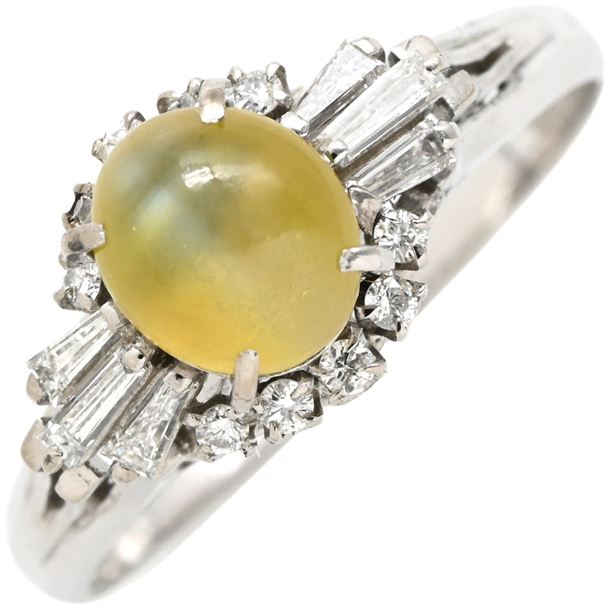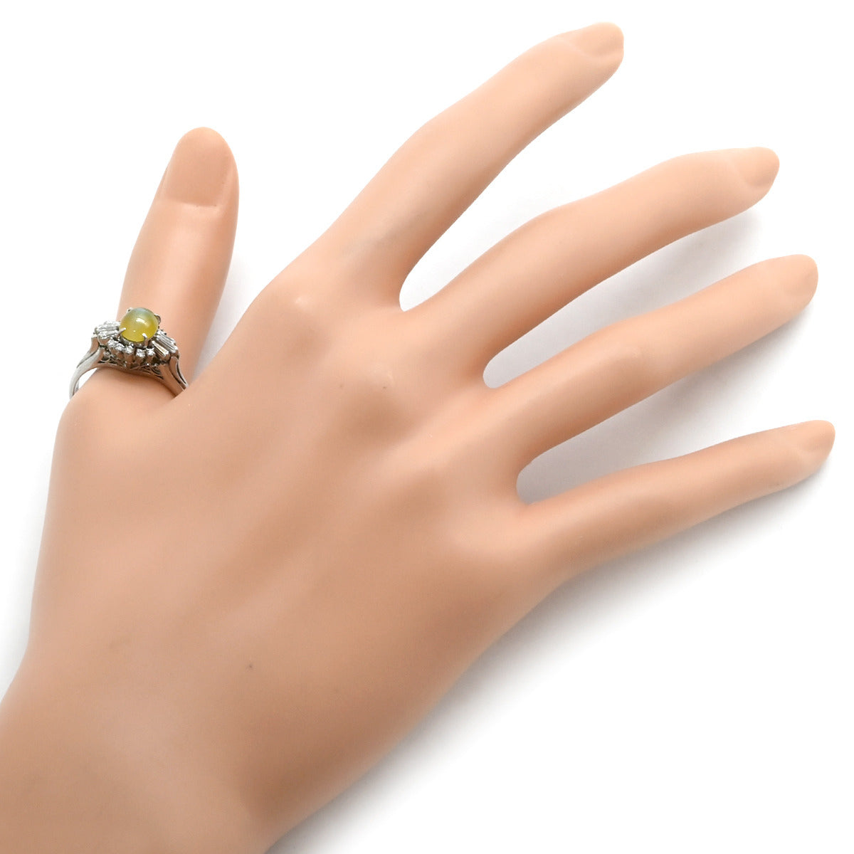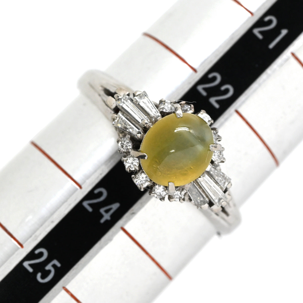 ノンブランド NON BRAND キャッツアイ ダイヤリング プラチナシルバー Pt900 クリソベリルキャッツアイ ダイヤモンド リング 指輪 猫目石 23号