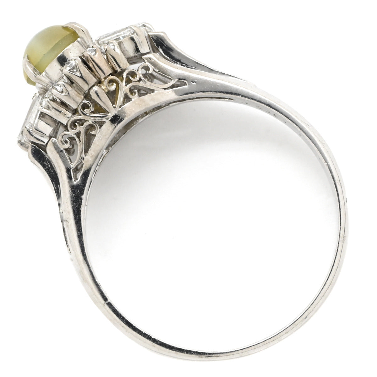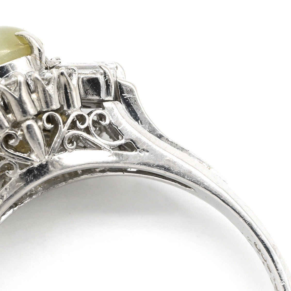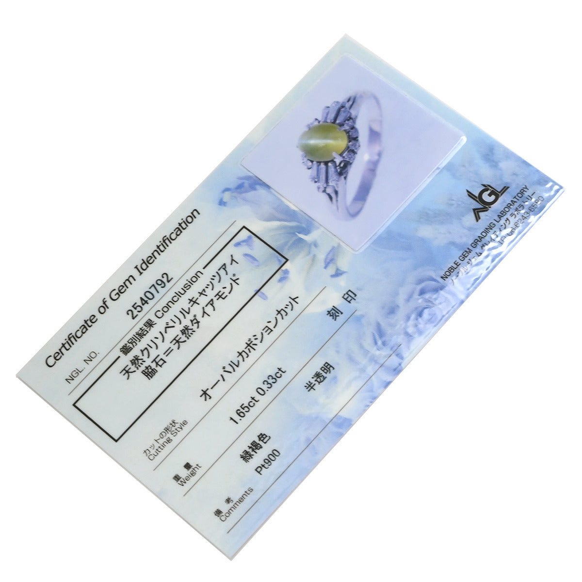 ノンブランド NON BRAND キャッツアイ ダイヤリング プラチナシルバー Pt900 クリソベリルキャッツアイ ダイヤモンド リング 指輪 猫目石 23号