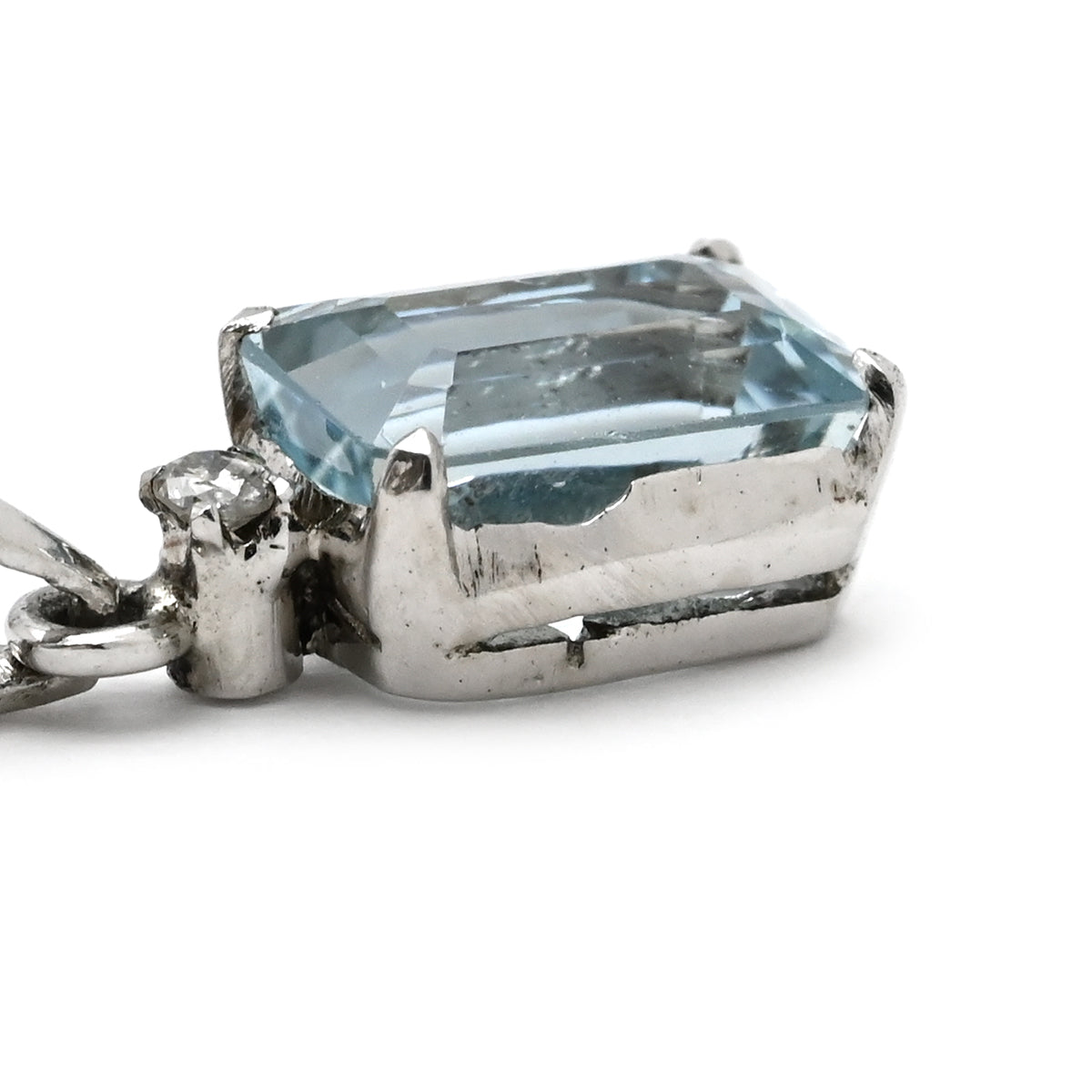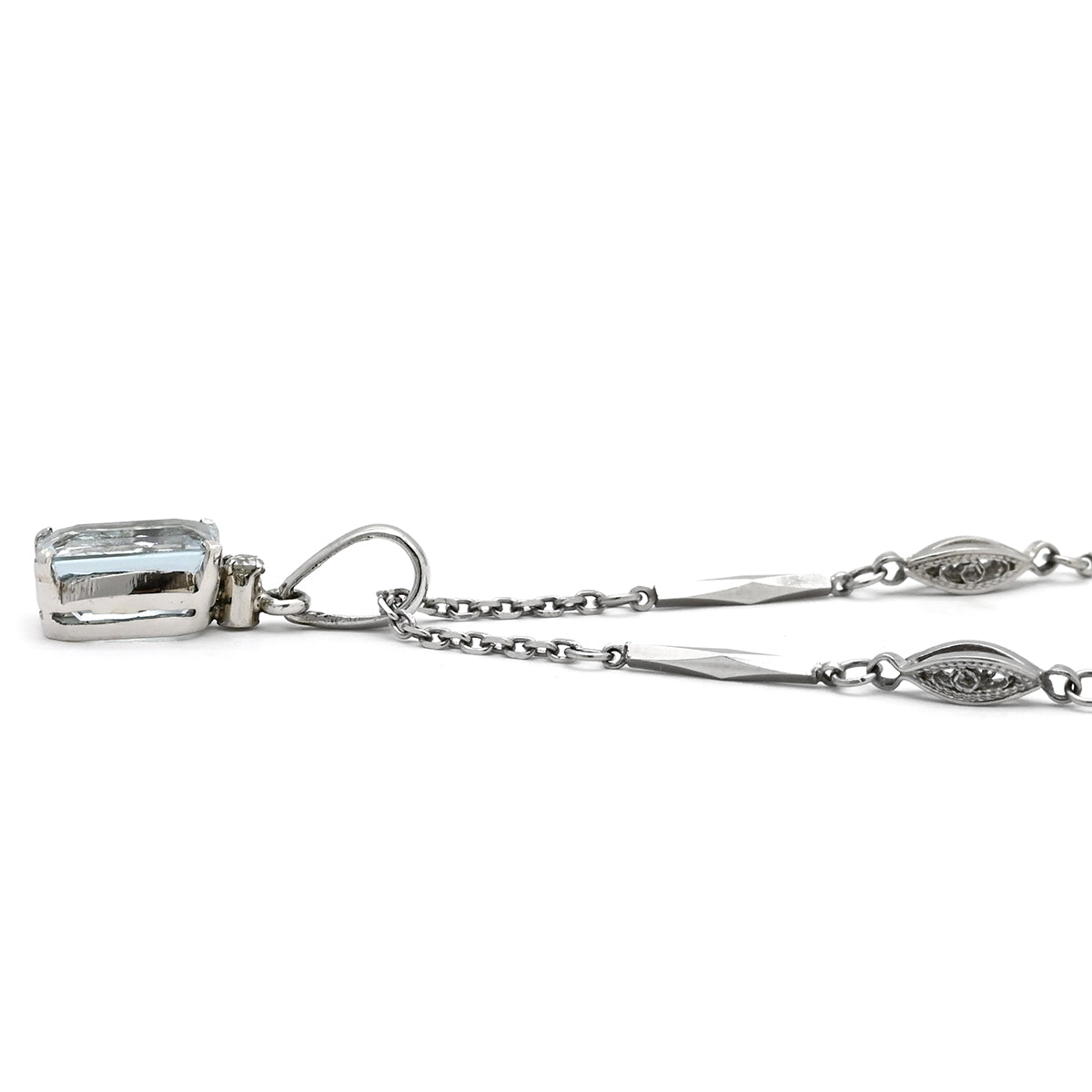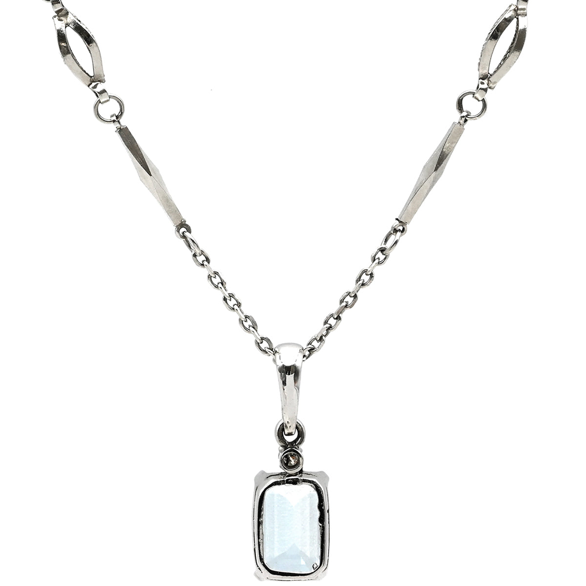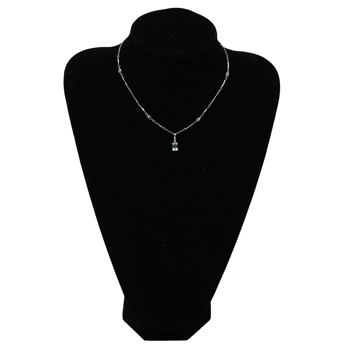 ノンブランド NON BRAND ライトブルー×プラチナシルバー ネックレス 水色 アクアマリン スクエア バケットカット ダイヤ プラチナ