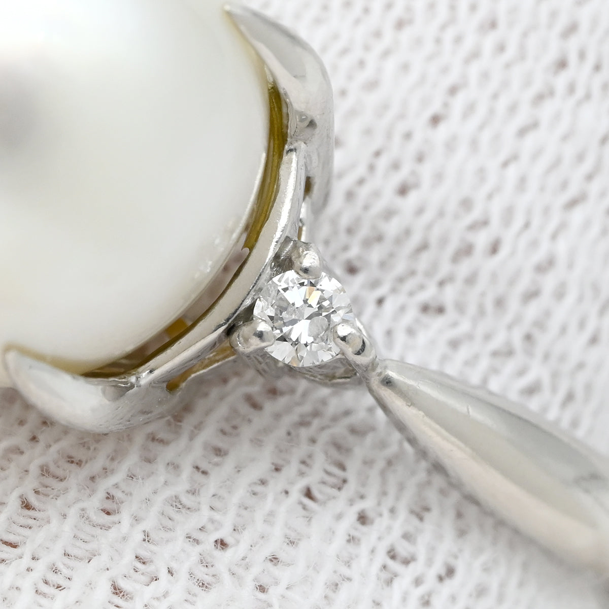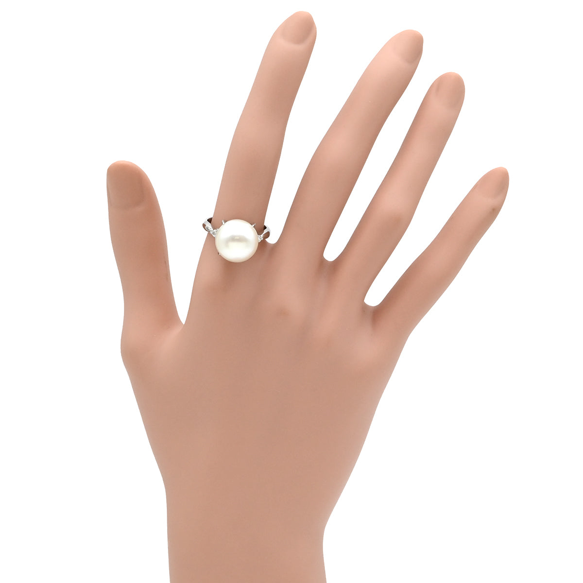ノンブランド NON BRAND 白蝶パール ダイヤリング プラチナシルバー リング 指輪 1粒 1P 14.5号