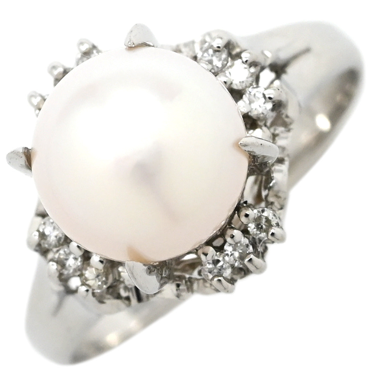 ノンブランド NON BRAND パール ダイヤリング プラチナシルバー リング 指輪 1粒 1P 10.5号