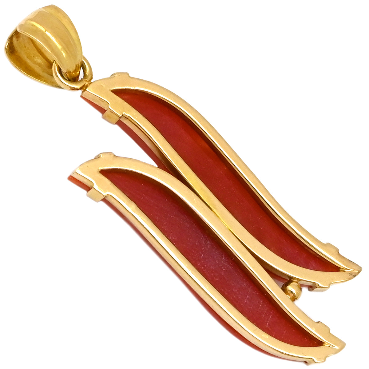 ノンブランド NON BRAND 珊瑚 イエローゴールド ペンダントトップ 赤 血赤サンゴ