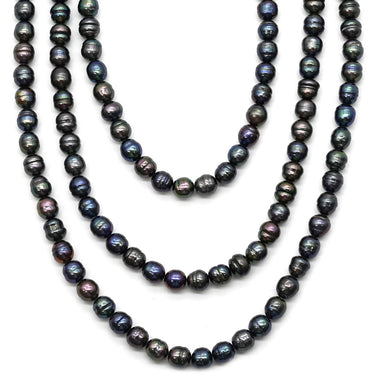ノンブランド NON BRAND パールブラック シルバー パール ネックレス 黒 バロックパール 淡水パール 真珠 silver ロングネックレス 3連 3重