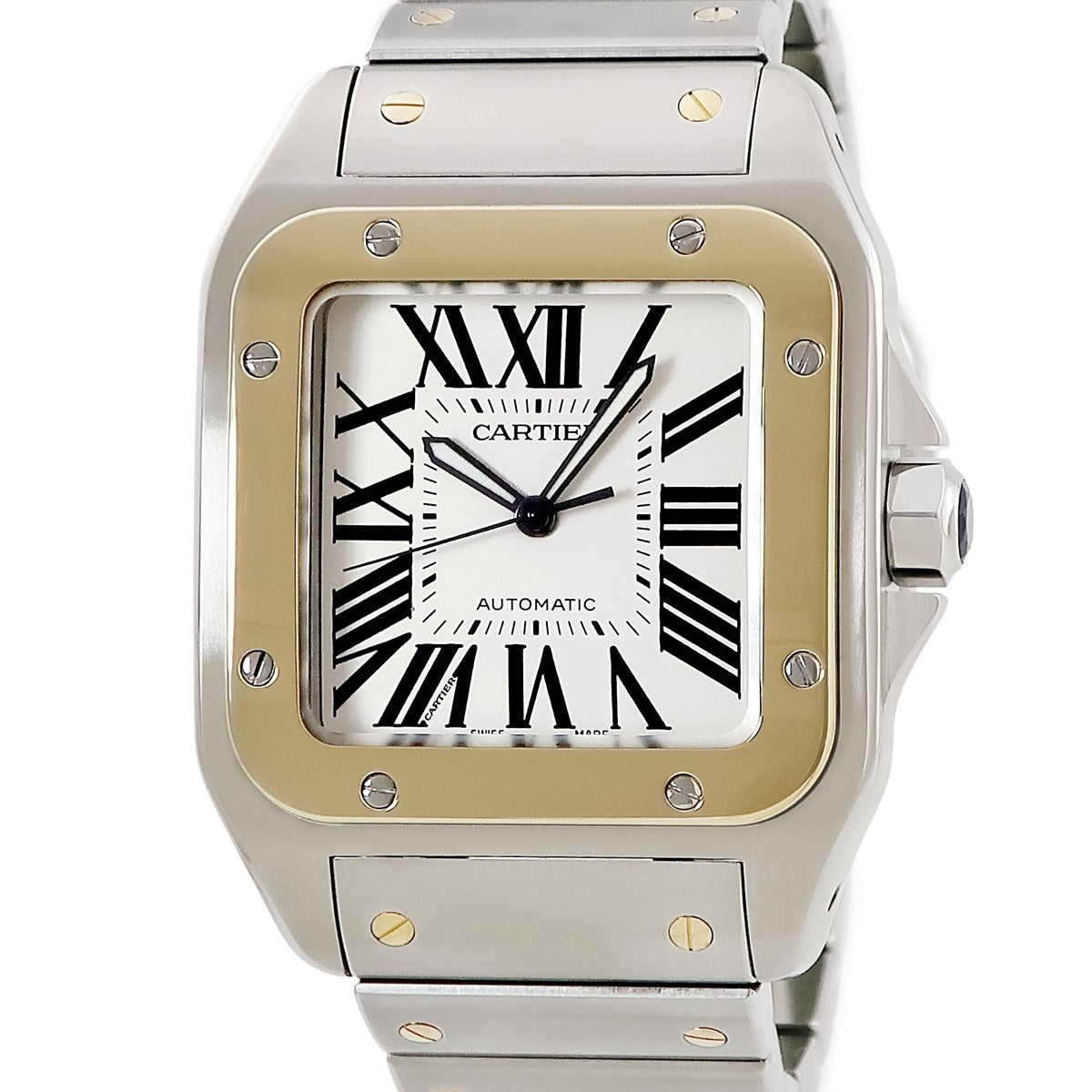 カルティエ Cartier サントス100 LM 100周年記念モデル W20077X7 自動巻き メンズ K18YG×SS コンビ 白 ローマン 角型 希少