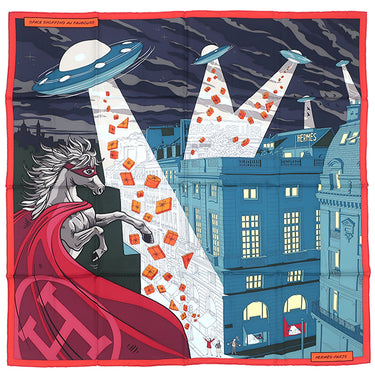 エルメス HERMES カレ90 CARRE レッド×グリーン×マルチカラー シルク スカーフ 【SPACE SHOPPING AU FAUBOURG/フォーブールでのスペースショッピング】