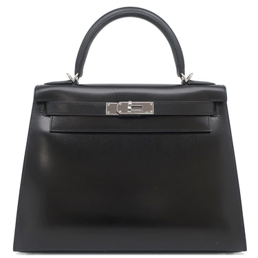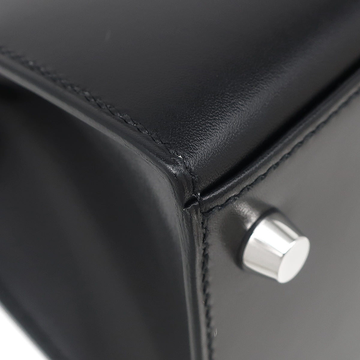 エルメス HERMES ケリー28 外縫い ブラック ボックスカーフ 2WAYバッグ シルバー金具 黒 ショルダー