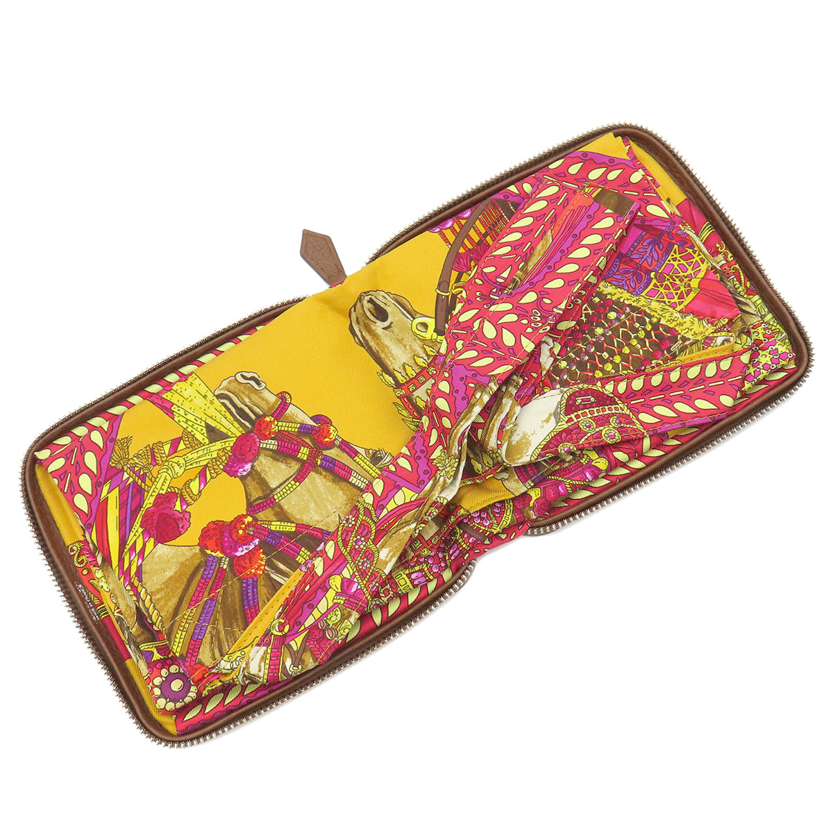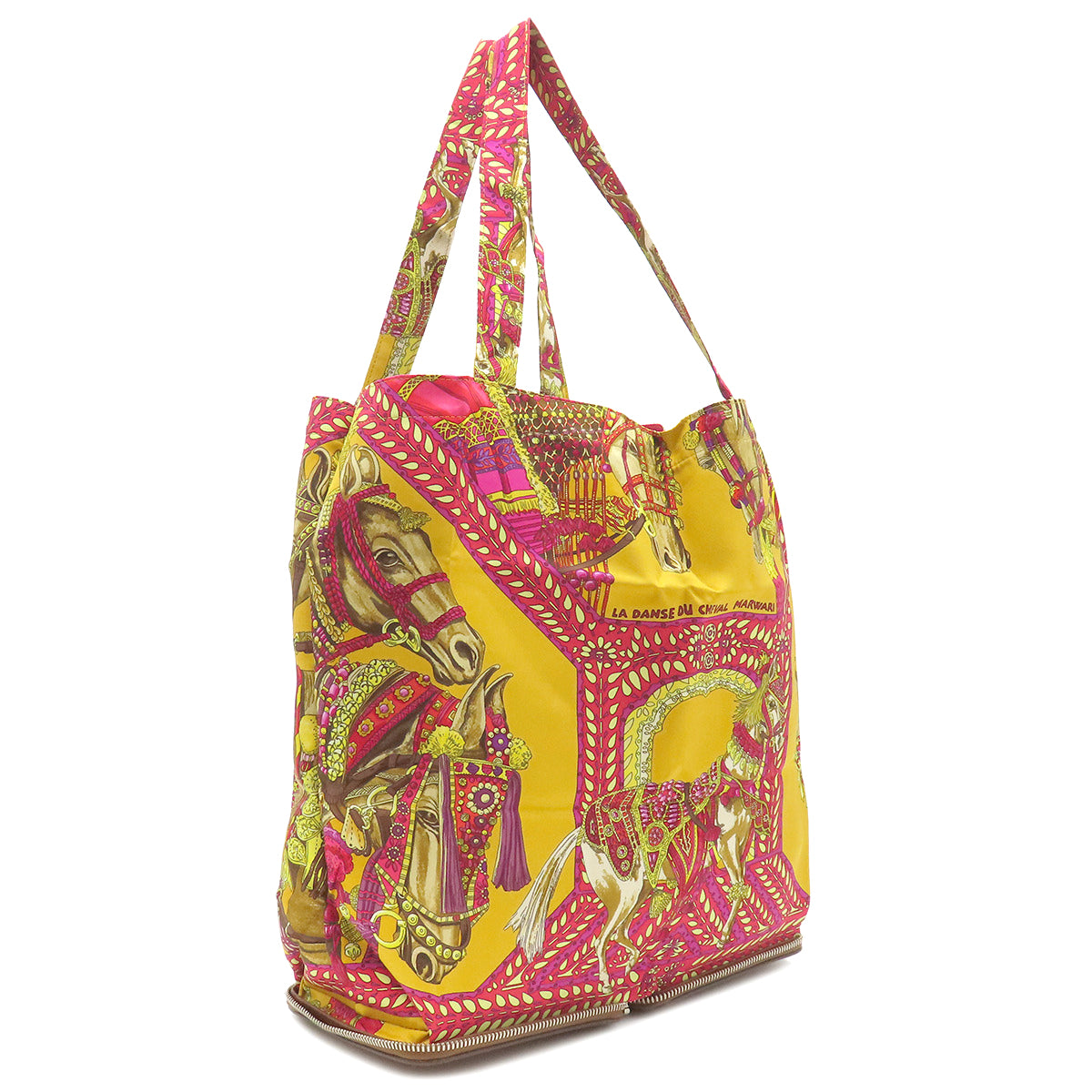 エルメス HERMES シルキーポップ イエロー×ピンク×マルチカラー シルク レザー トートバッグ シルバー金具 【LA DANSE DU CHEVAL MARWARI/マールワーリ馬のダンス】 折りたたみ