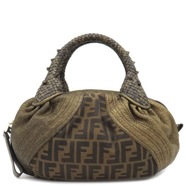 フェンディ FENDI ズッカ ミニ スパイバッグ 8BL078 ゴールド×ブラウン キャンバス レザー ハンドバッグ ゴールド金具 茶