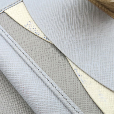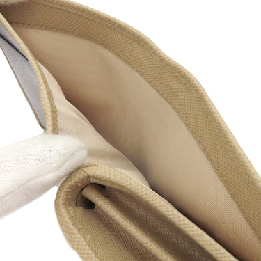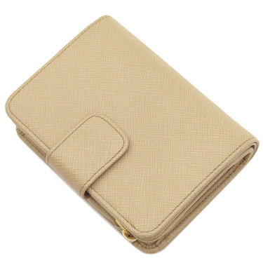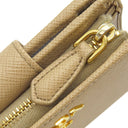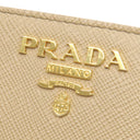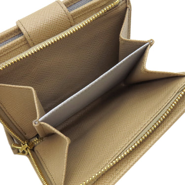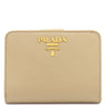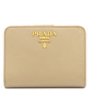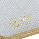 プラダ PRADA メタルロゴ コンパクトウォレット 1ML018 ZLP ベージュ サフィアーノレザー 二つ折り財布 ゴールド金具 ブルーグレー バイカラー SAFFIANO MULTICOLOR