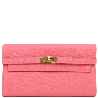 エルメス HERMES ケリーウォレット ロング ローズアザレ ヴォーエプソン 長財布 ゴールド金具