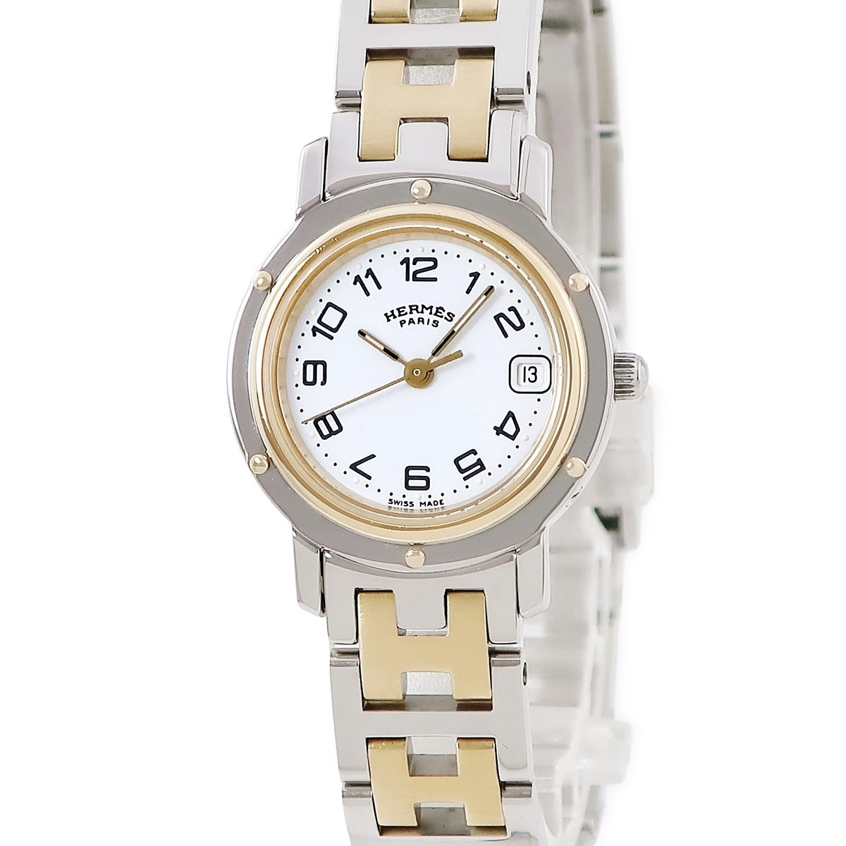 エルメス HERMES クリッパー CL4.220 クオーツ レディース GP×SS コンビ ホワイト Hマークブレス ヴィンテージ
