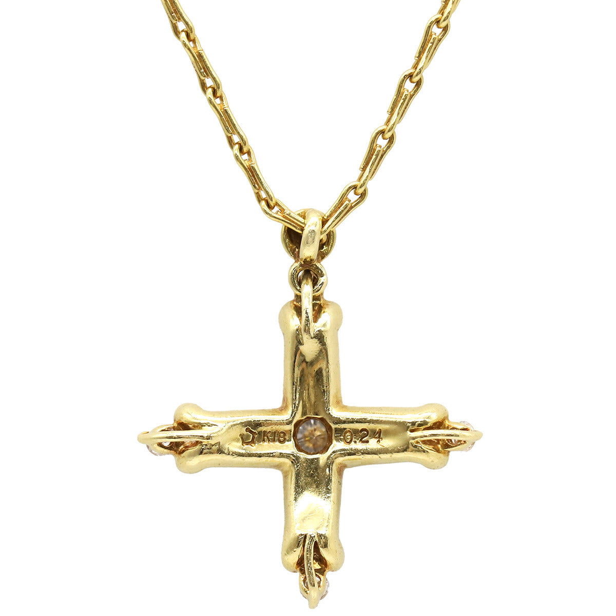 星の砂 ミニクロス ダイヤ ペンダント イエローゴールド K18YG ダイヤモンド ネックレス 750 YG 5P ダイヤモンド