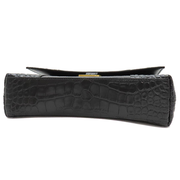 バレンシアガ BALENCIAGA ダウンタウン チェーンショルダーバッグ XS 689121 ブラック レザー ショルダーバッグ ヴィンテージ金具 黒 クロコ型押し