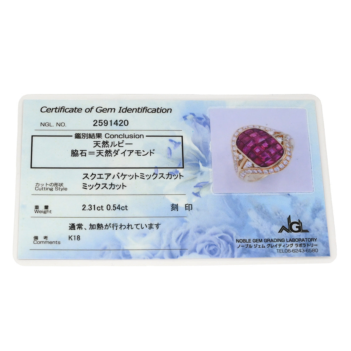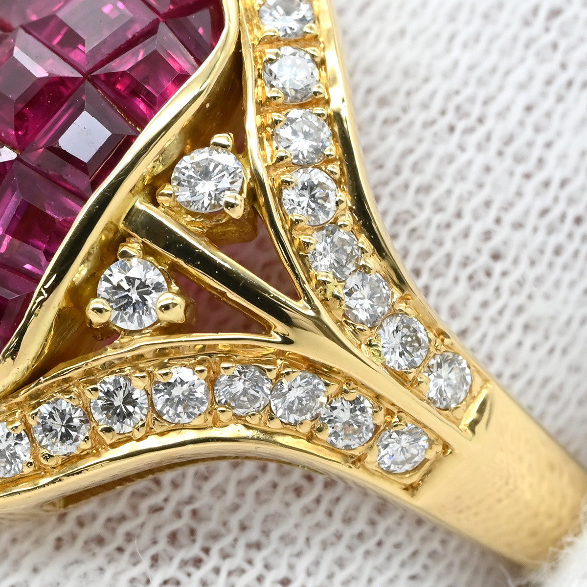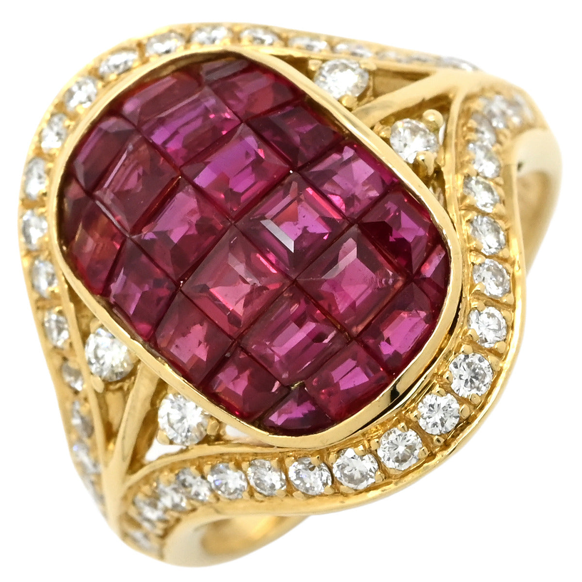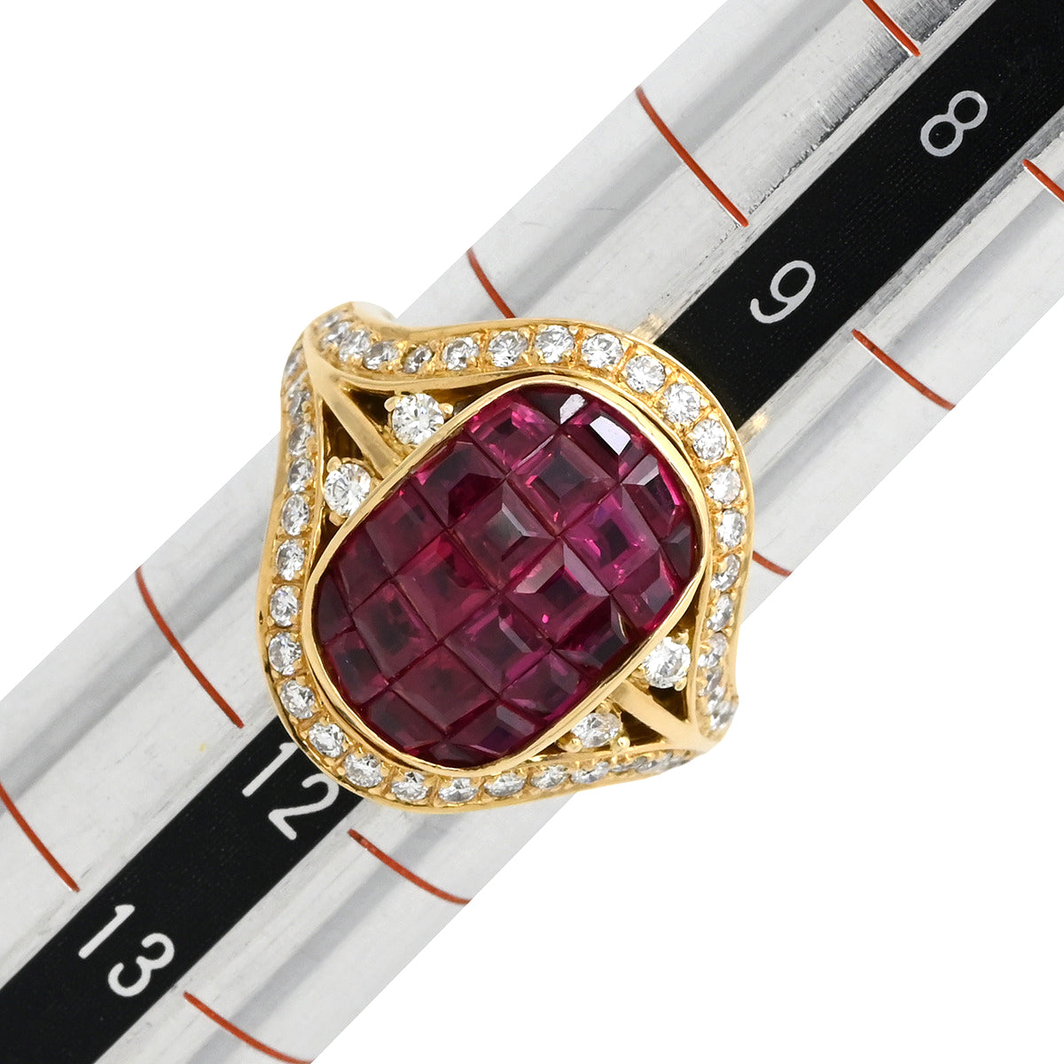 ノンブランド NON BRAND ルビー ダイヤリング イエローゴールド K18YG ルビー ダイヤモンド リング 指輪 レッド 赤 11号
