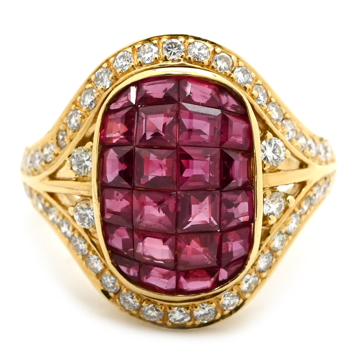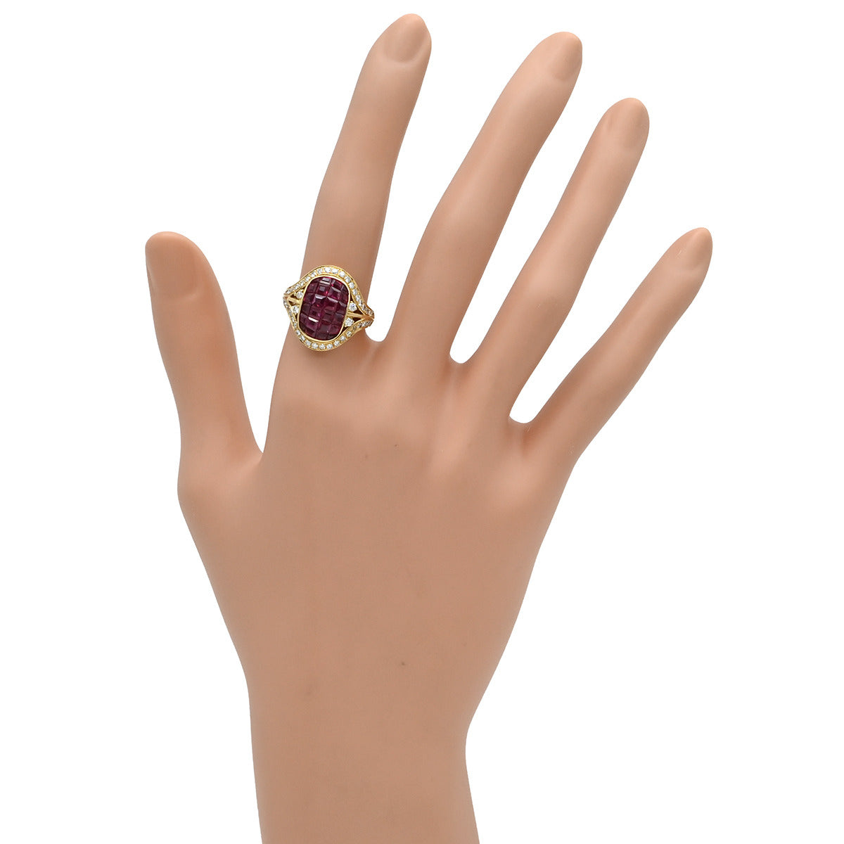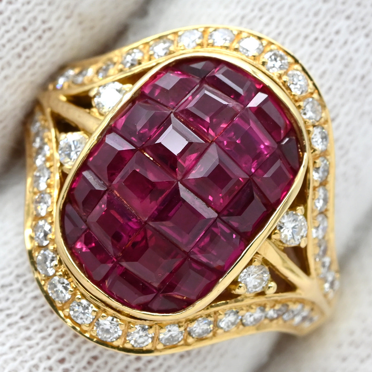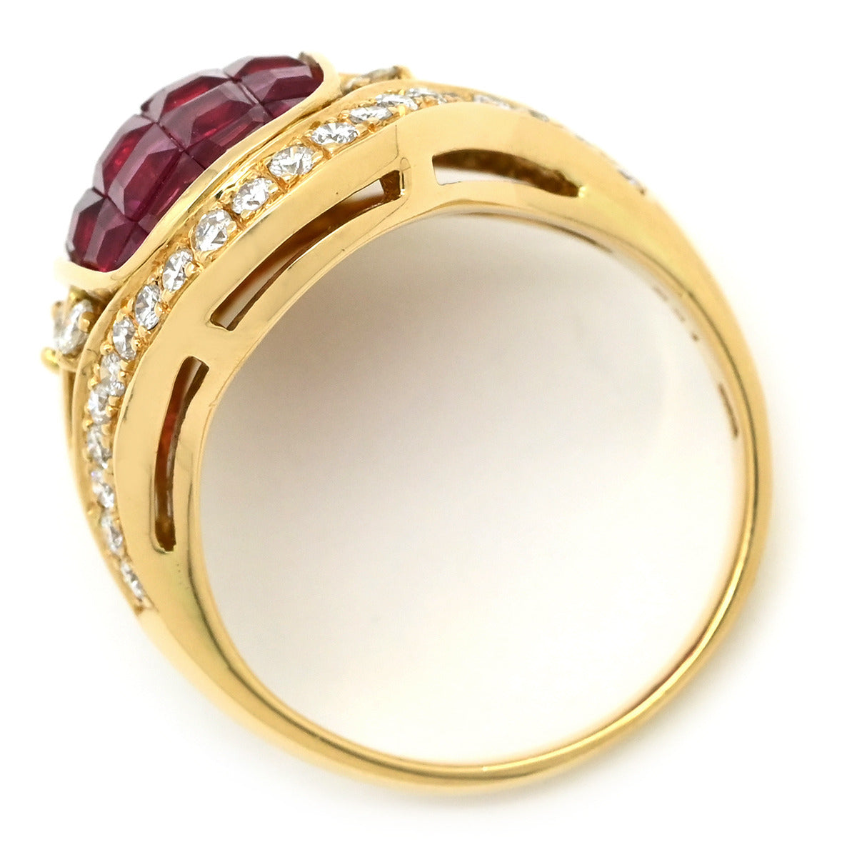 ノンブランド NON BRAND ルビー ダイヤリング イエローゴールド K18YG ルビー ダイヤモンド リング 指輪 レッド 赤 11号